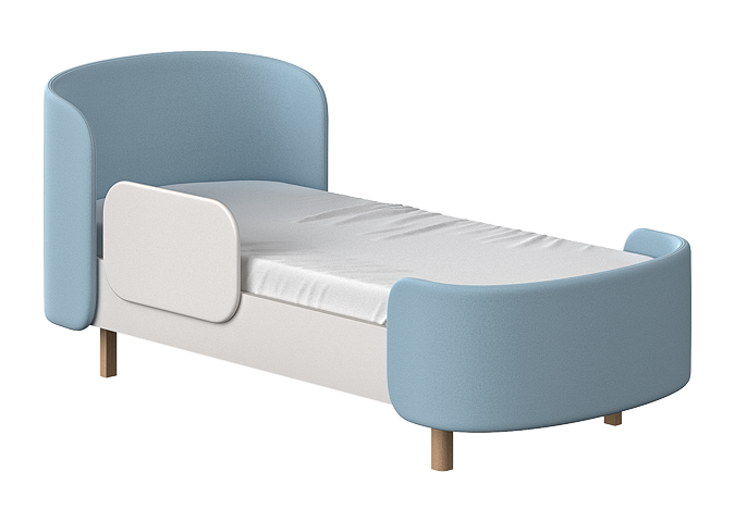 Закруглённые углы и мягкая приятная на ощупь обивка делают кровать уютной и безопасной.