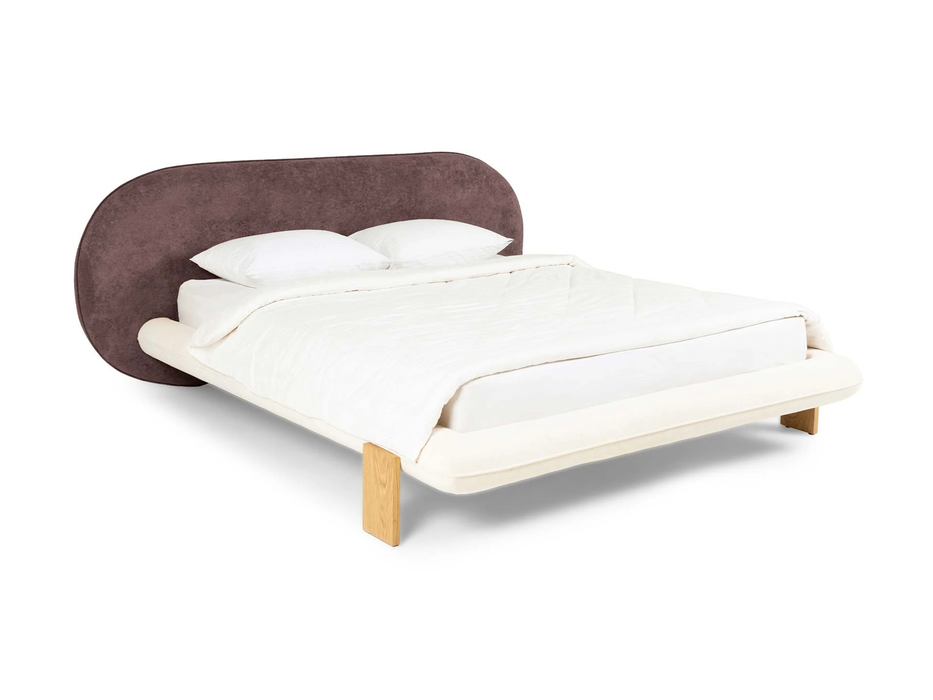 Softbay — дизайнерская кровать со скульптурным овальным изголовьем, мягкими царгами и опорами с облицовкой из ясеня. Модель имеет смелый образ, который построен на плавных линиях, минимализме с намеком на скандинавскую эстетику. Нежное комфортное изголовье без острых углов идеально подходит для чтения, просмотра фильмов, ценных минут релакса и отдыха. Периметр состоит из боковин, полностью обитых супермягкой тканью «букле» с приятным ворсом. Выглядит красиво, актуально, безопасно и эргономично.
