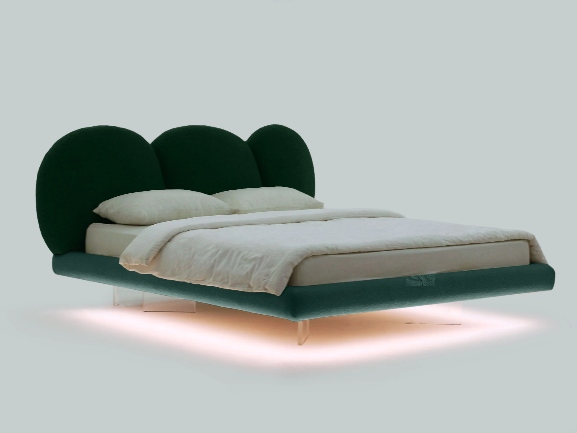 Парящий эффект создаётся прозрачными опорами из акрилового листа. Они незаметно приподнимают кровать, словно она левитирует в воздухе. Светодиодная лента, установленная на нижней поверхности царг, усиливает это впечатление. Она также служит дополнительным источником света, поддерживает камерный настрой на приятный отдых и глубокий сон. С помощью пульта вы можете выбрать цвет свечения: тёплый, холодный, нейтральный. Настраивайте по желанию эстетичную атмосферу с чувственным очарованием или лаконичный фон для внутреннего баланса. Кровать Targa — ваш личный источник сил и вдохновения!