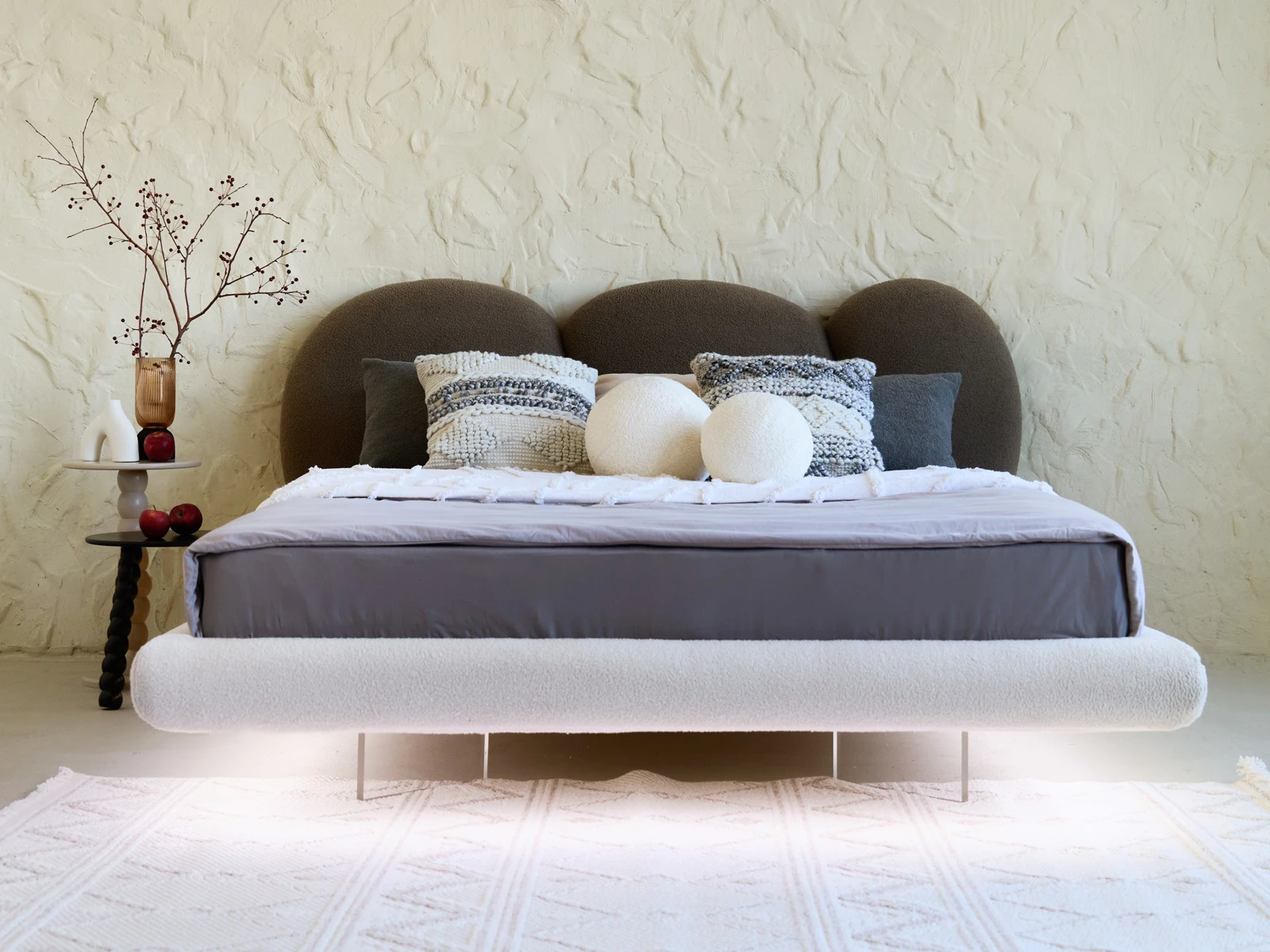 Парящий эффект создаётся прозрачными опорами из акрилового листа. Они незаметно приподнимают кровать, словно она левитирует в воздухе. Светодиодная лента, установленная на нижней поверхности царг, усиливает это впечатление. Она также служит дополнительным источником света, поддерживает камерный настрой на приятный отдых и глубокий сон. С помощью пульта вы можете выбрать цвет свечения: тёплый, холодный, нейтральный. Настраивайте по желанию эстетичную атмосферу с чувственным очарованием или лаконичный фон для внутреннего баланса. Кровать Targa — ваш личный источник сил и вдохновения!