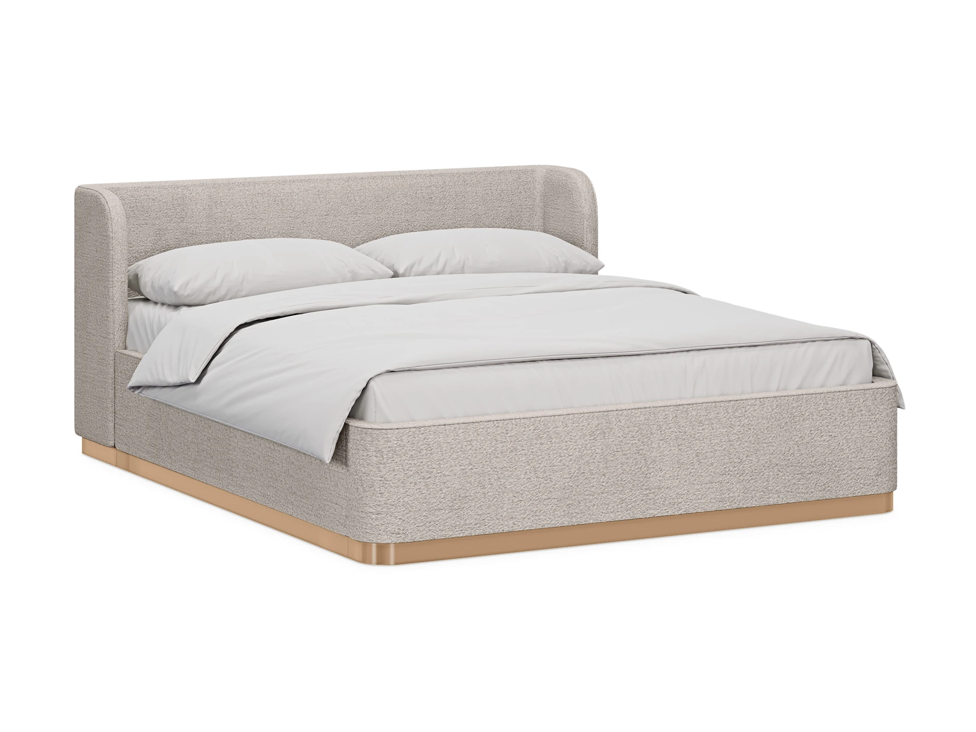 Кровать оснащена металлическим подъемным основанием с гибкими ламелями, под которым находится внутреннее отделение, предназначенное для хранения белья или других предметов. Спинка и царги кровати выполнены из плиты ЛДСтП т.22мм, брусков и березовой фанеры. Настилы из пенополиуретана и синтепона. Подиум сделан из плиты МДФ и брусков. Нижнюю часть подиума украшает металлическая лента из нержавеющей стали с покрытием «матовое золото». Дно бельевого ящика: плита ЛДСтП т.16мм «Белая Гладкая».