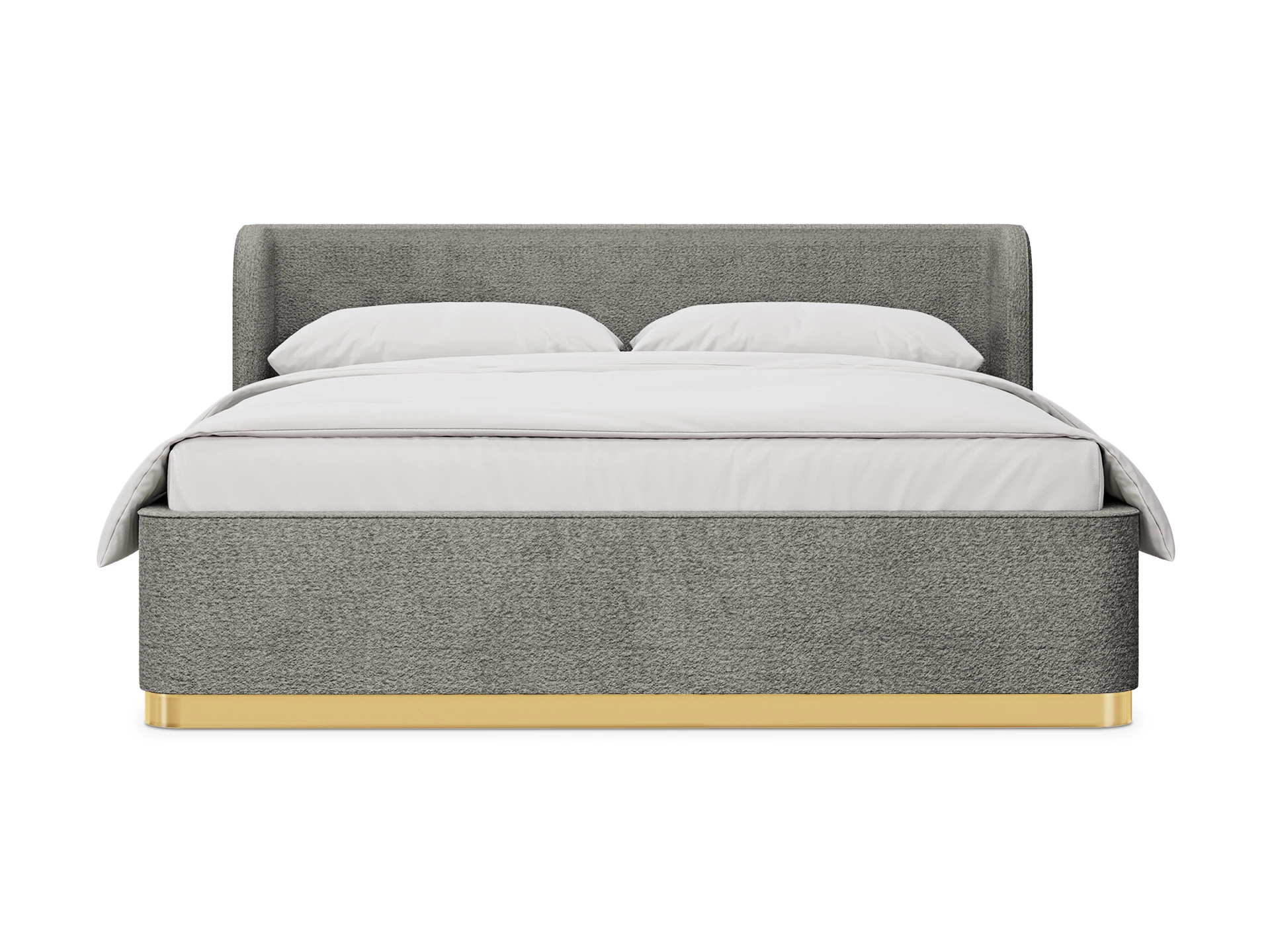 Кровать оснащена металлическим подъемным основанием с гибкими ламелями, под которым находится внутреннее отделение, предназначенное для хранения белья или других предметов. Спинка и царги кровати выполнены из плиты ЛДСтП т.22мм, брусков и березовой фанеры. Настилы из пенополиуретана и синтепона. Подиум сделан из плиты МДФ и брусков. Нижнюю часть подиума украшает металлическая лента из нержавеющей стали с покрытием «матовое золото». Дно бельевого ящика: плита ЛДСтП т.16мм «Белая Гладкая».
