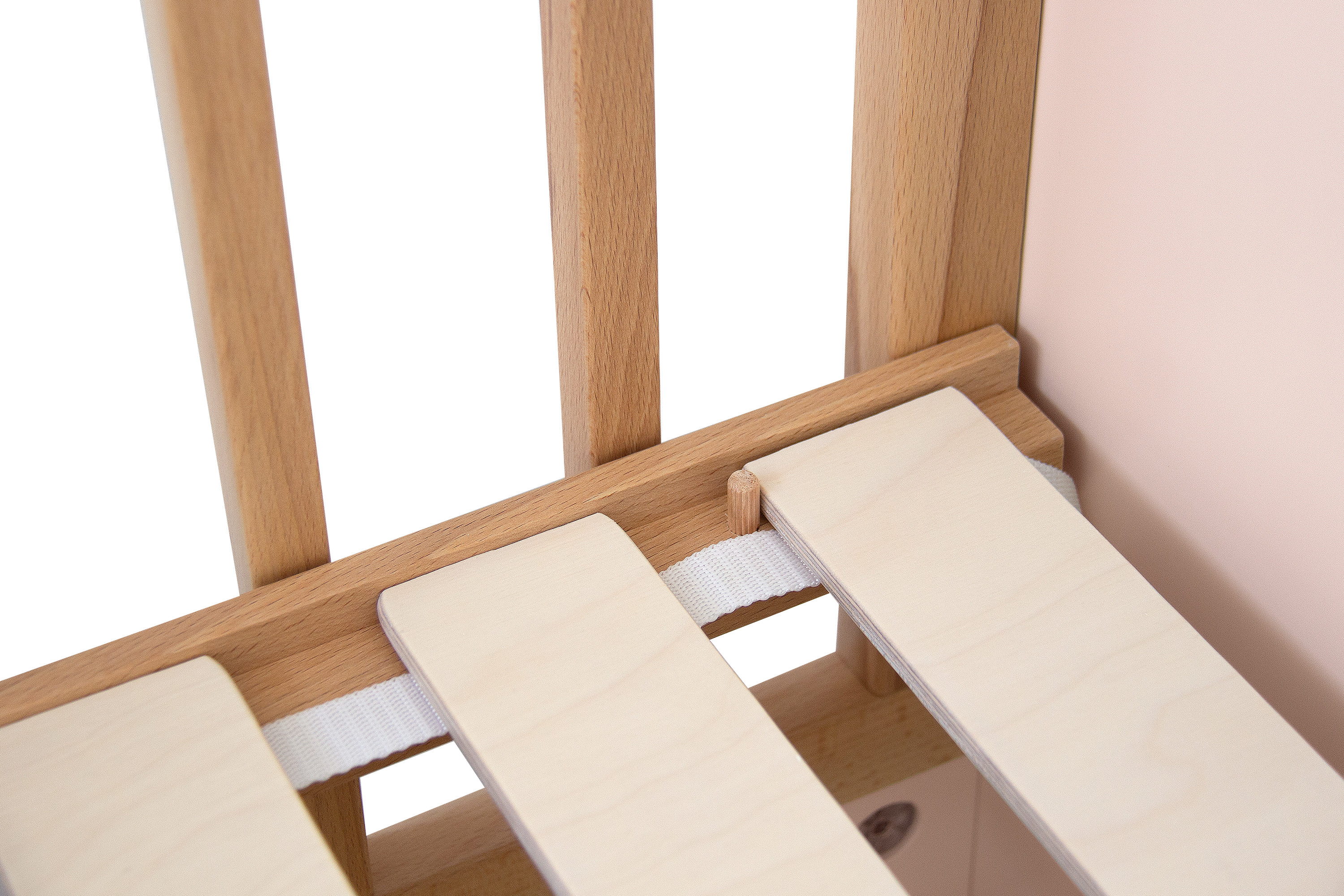 Кроватка оснащена скрытыми колесиками, поэтому вы можете свободно перемещать ее по квартире
