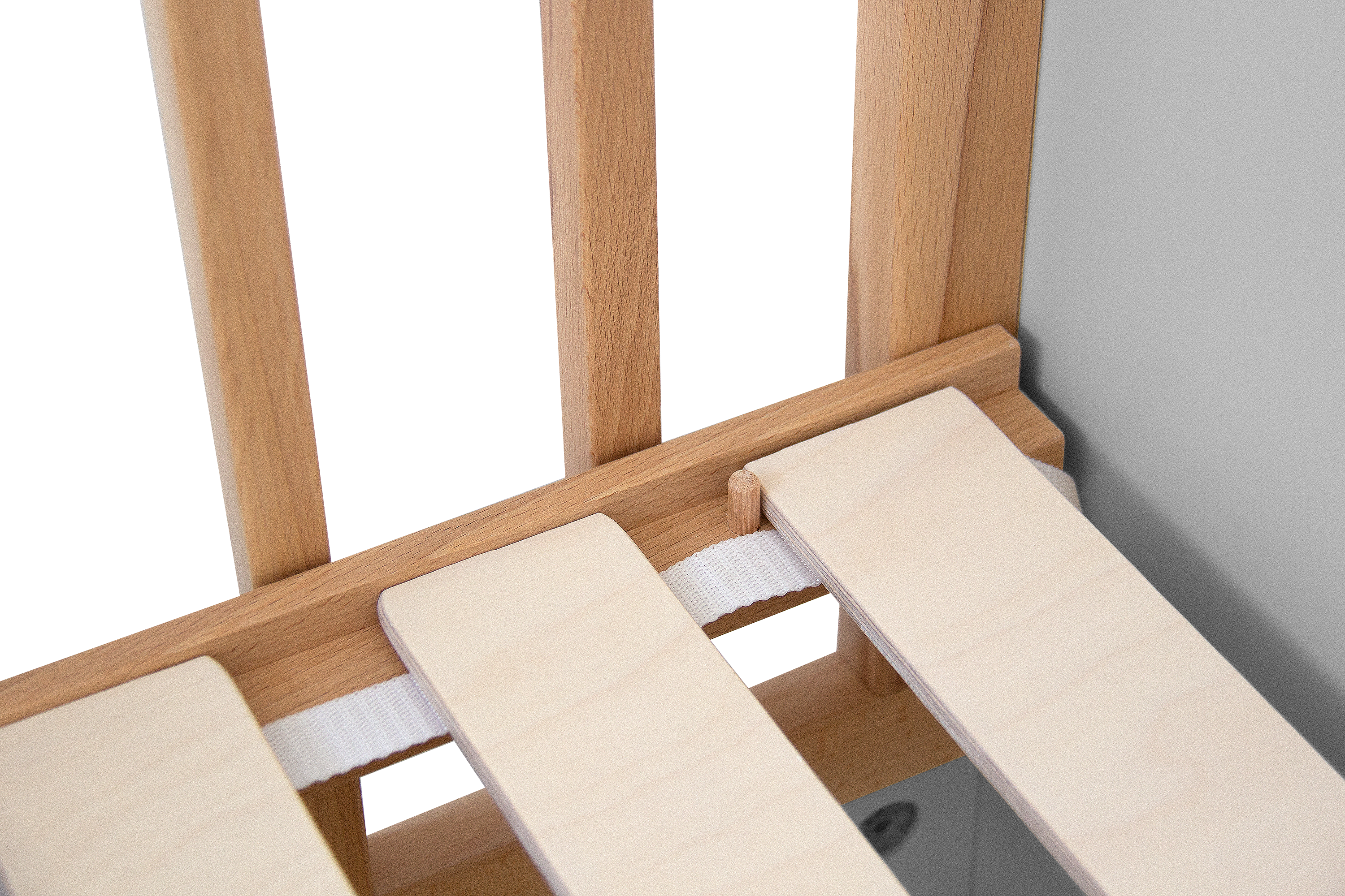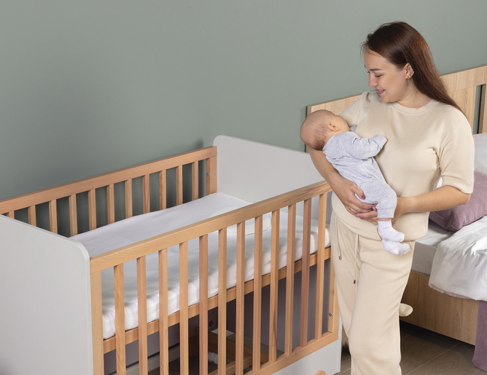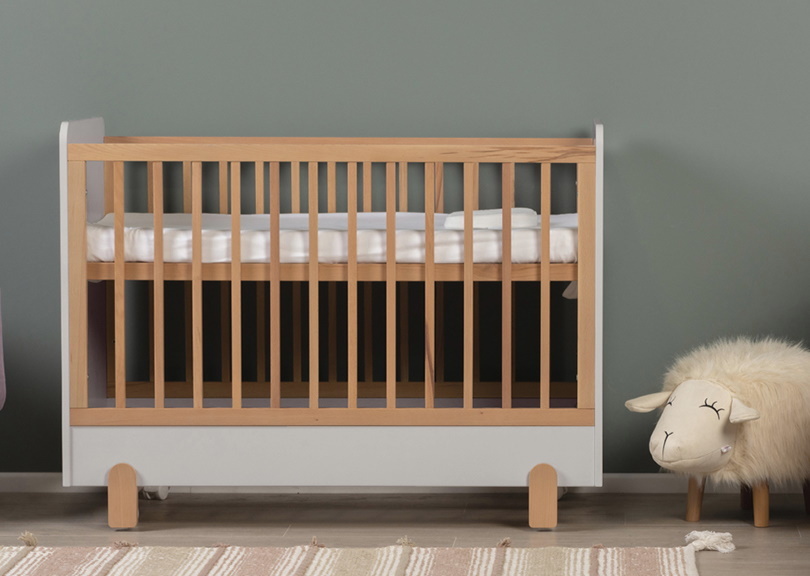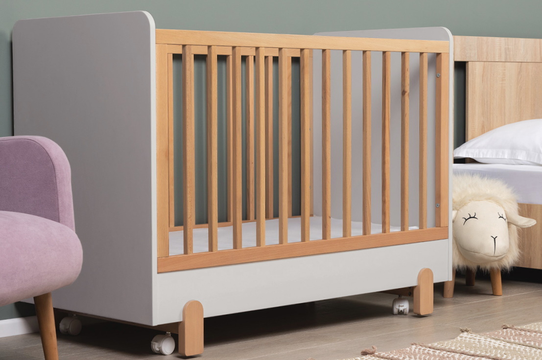 Кроватка оснащена скрытыми колесиками, поэтому вы можете свободно перемещать ее по квартире