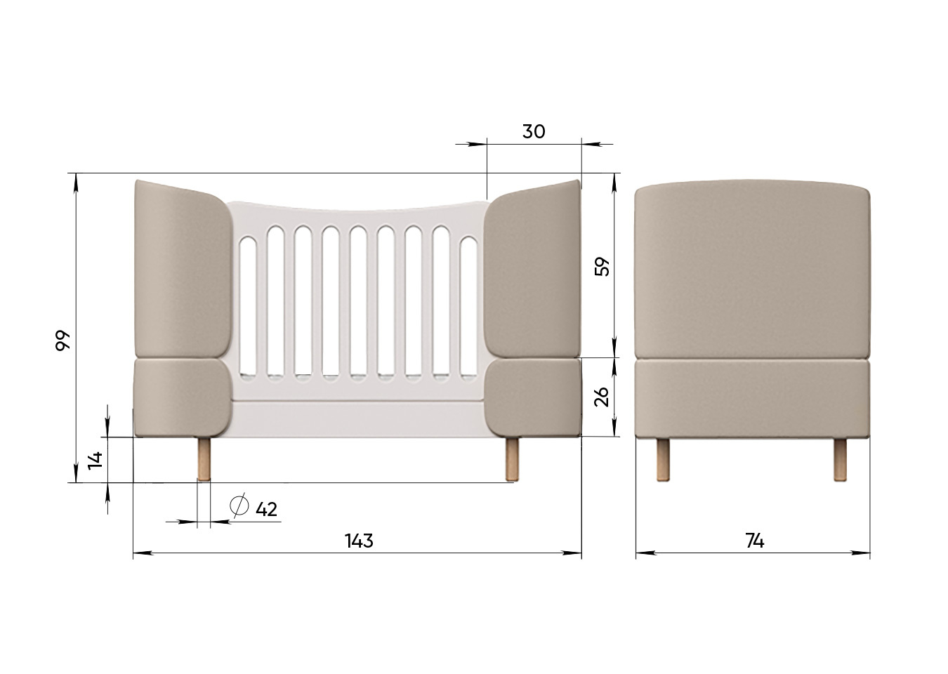 - диванчик 74*143 см (от 2 до 4 лет)