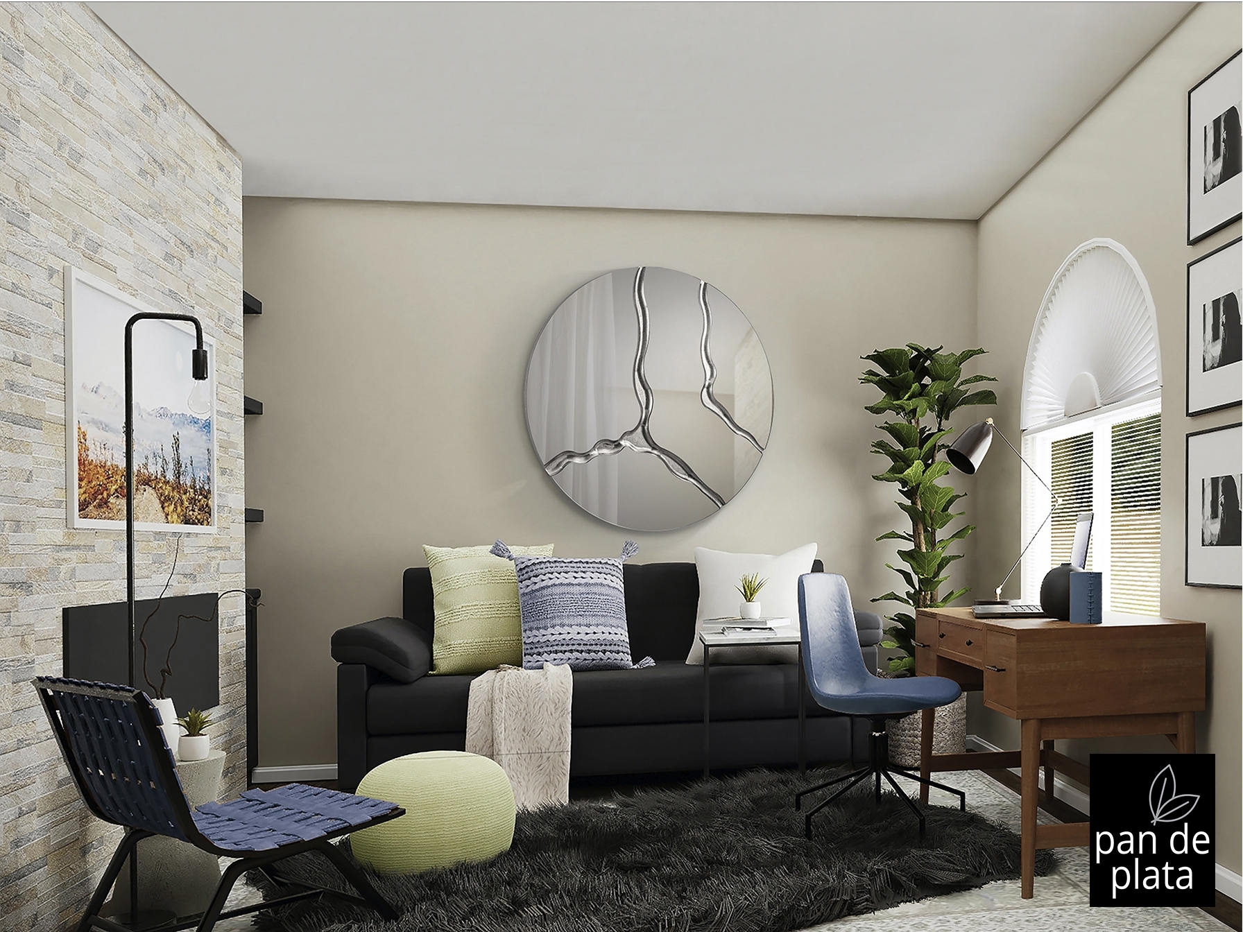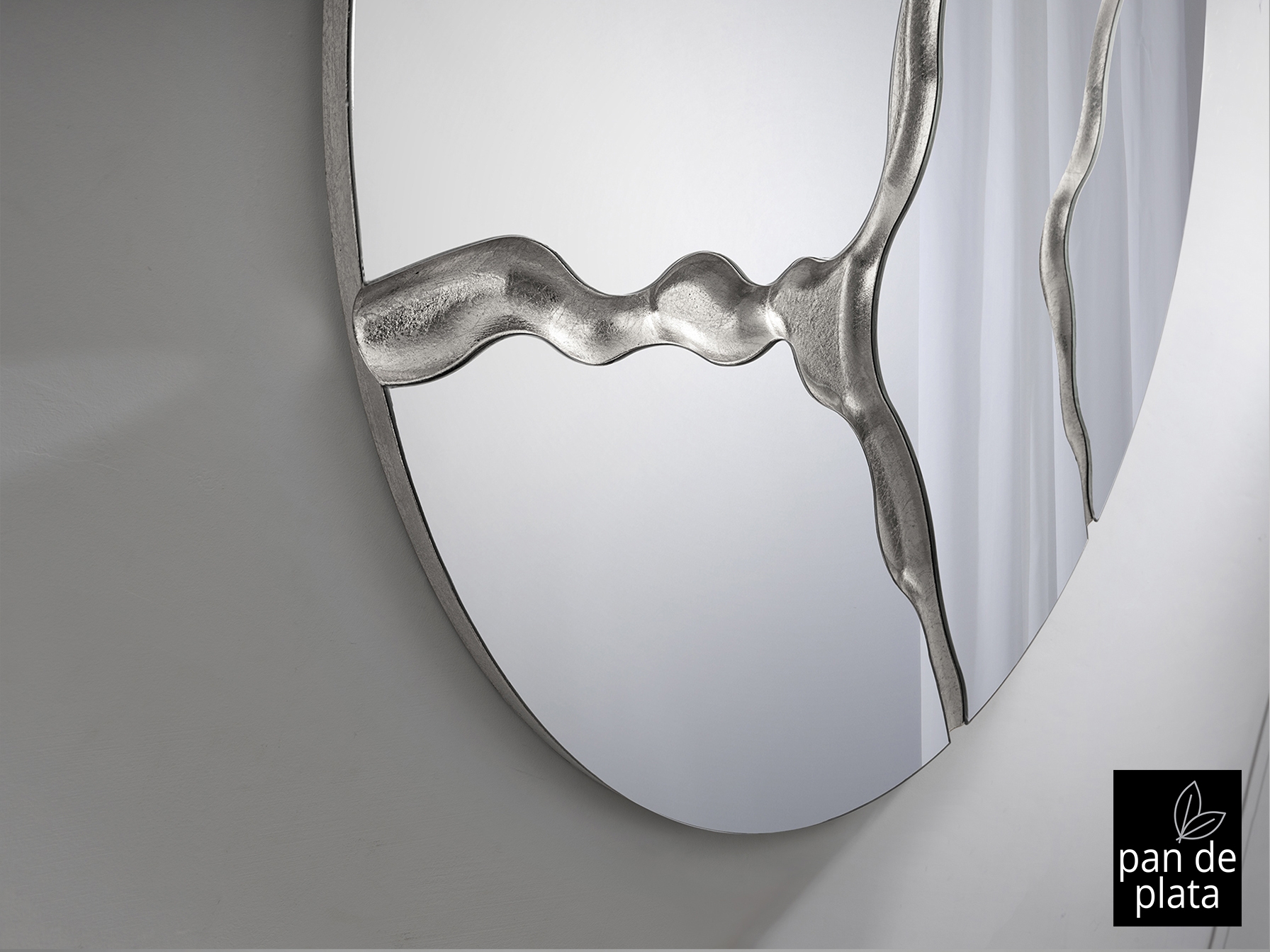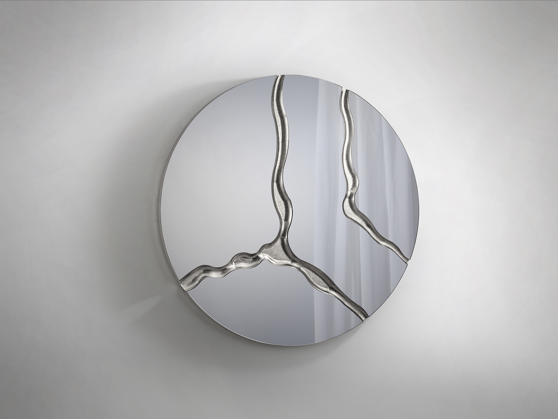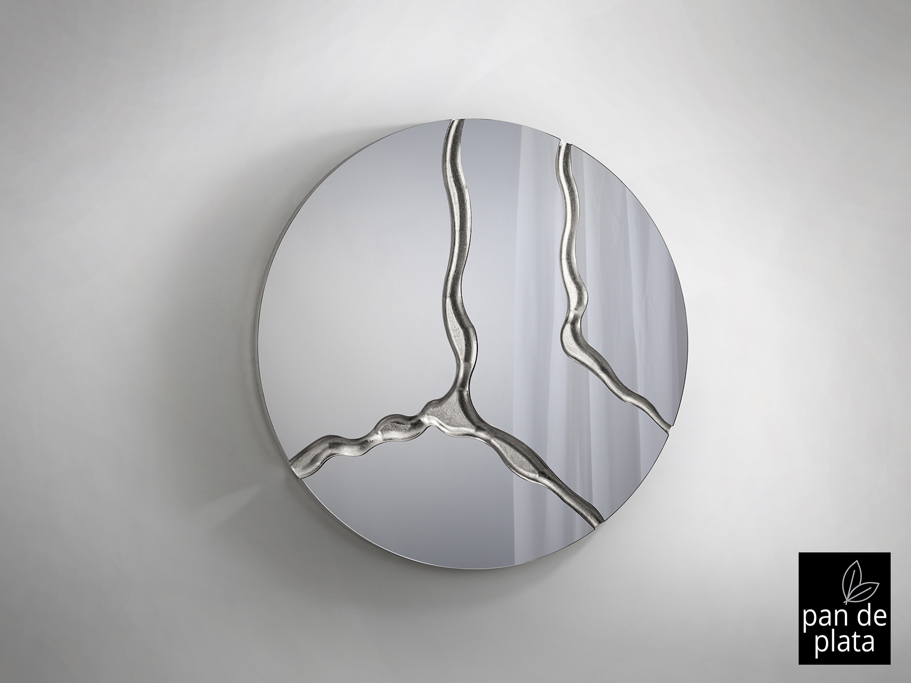 Круглое зеркало с задней частью МДФ, отделка SILVER LEAVES.