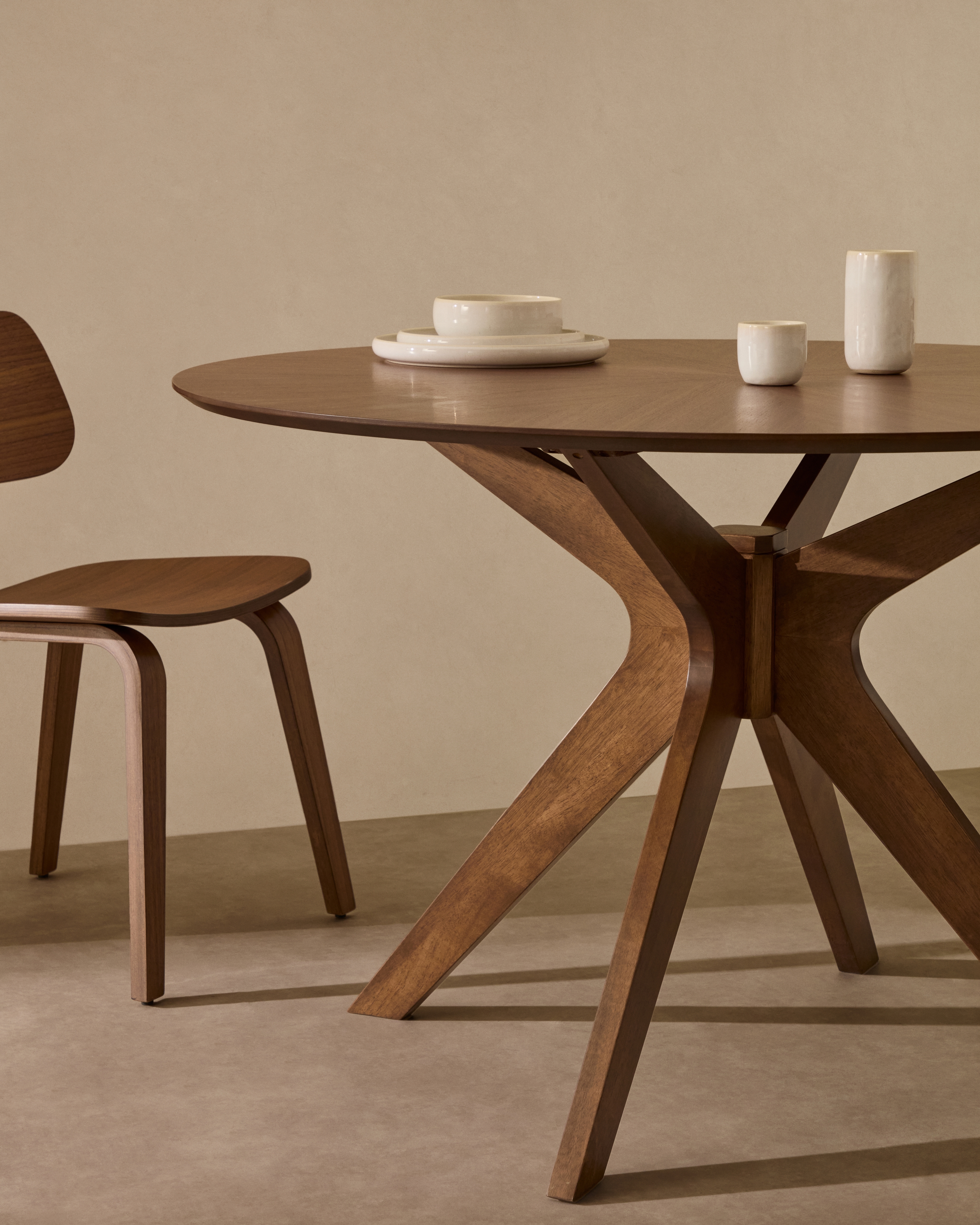 Круглый стол Naanim от фабрики La Forma (ex Julia Grup) — потрясающий ореховый шпон для домашней обстановки.