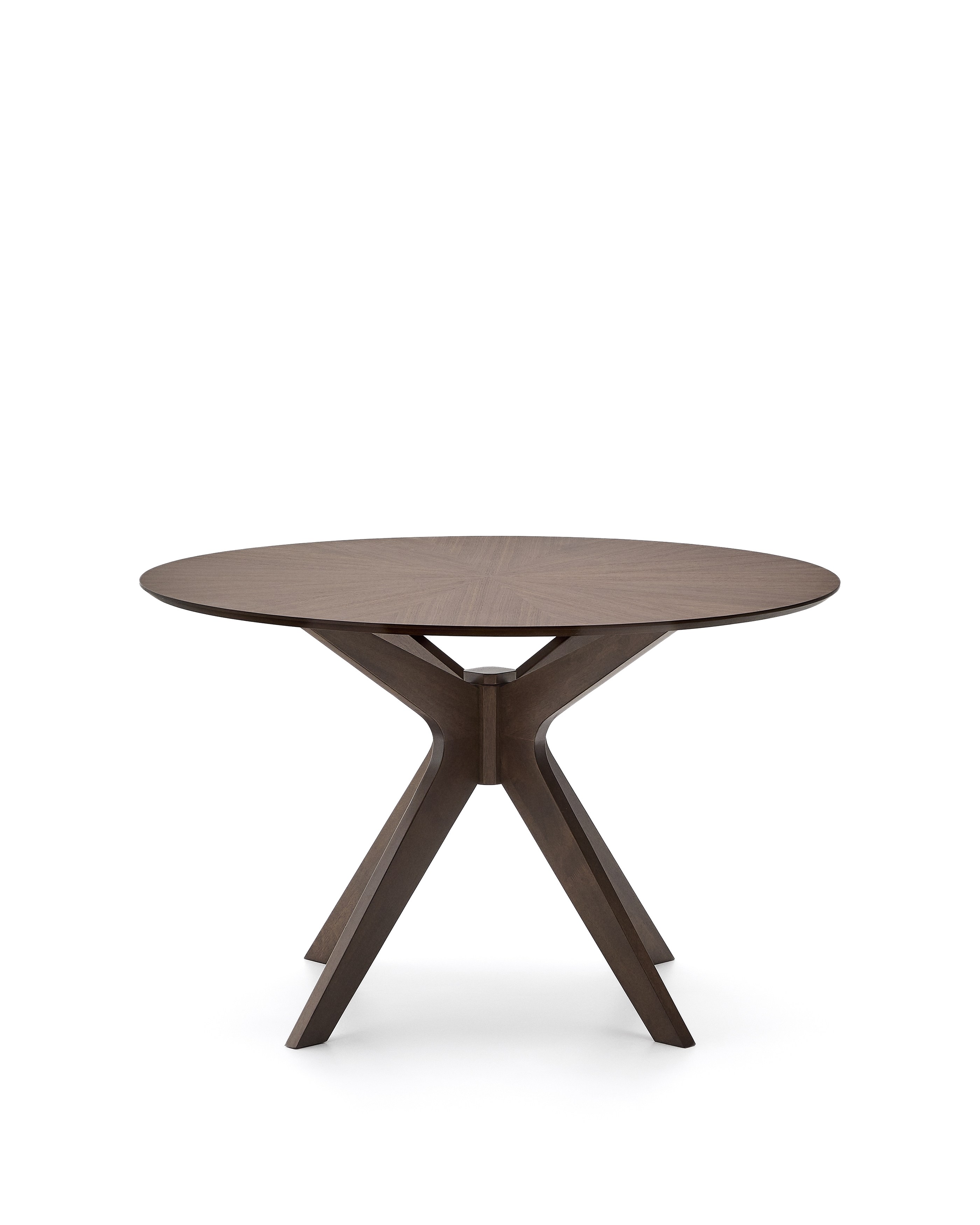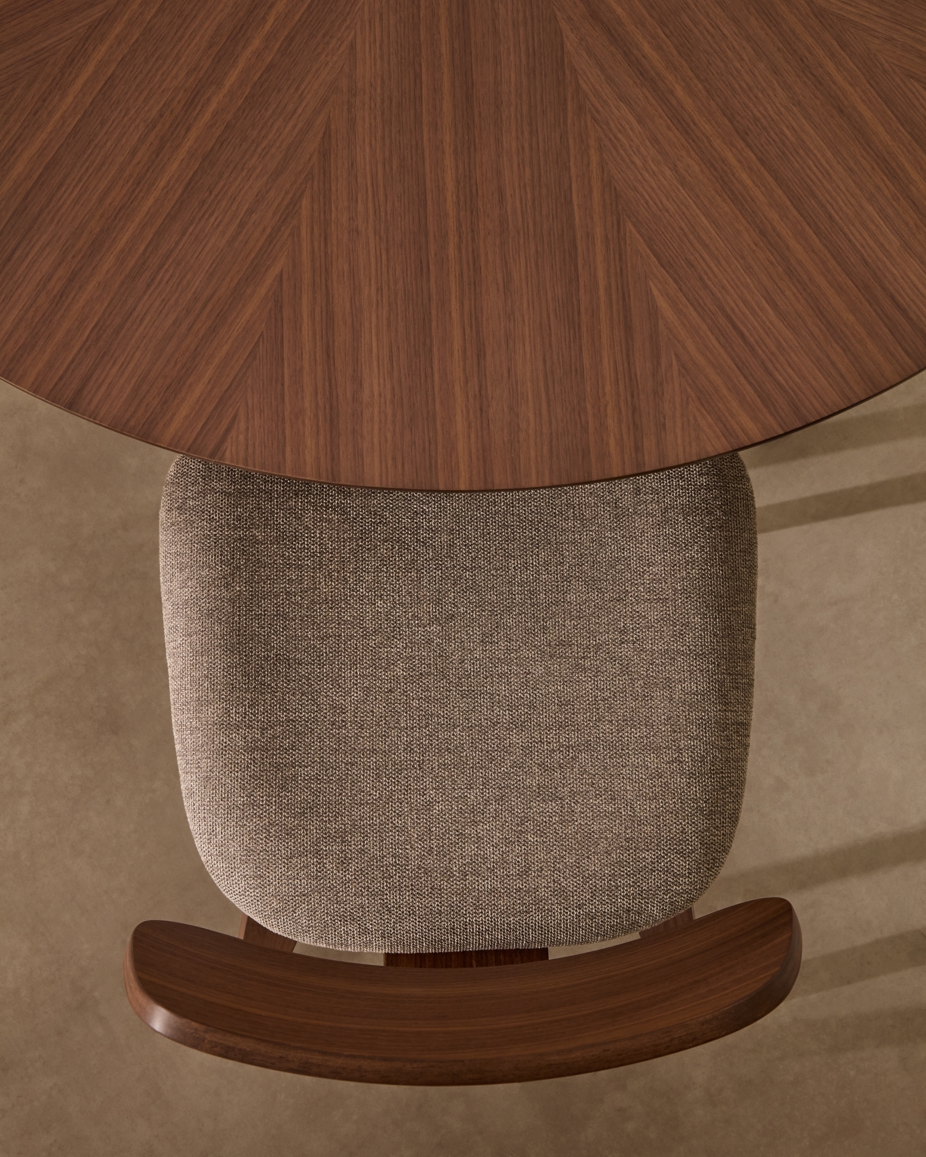 Каждый стол Naanim уникален, изготовлен из натурального орехового шпона и ножек из массива каучукового дерева. Кроме того, волокна сходятся в форме звезды с эксклюзивными оттенками, что придает ему отличительный характер.