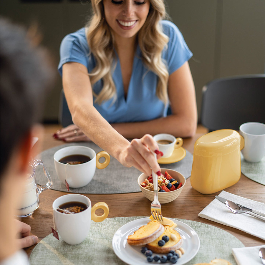Стильная чашка Everyday от итальянского бренда Guzzini идеально подходит для подачи ароматного кофе, чая и других напитков. Простая форма и минималистический дизайн позволят вписаться ей в любой дизайн кухни. Эргономичная ручка обеспечит удобство при эксплуатации. Предмет можно использовать в микроволновой печи.
