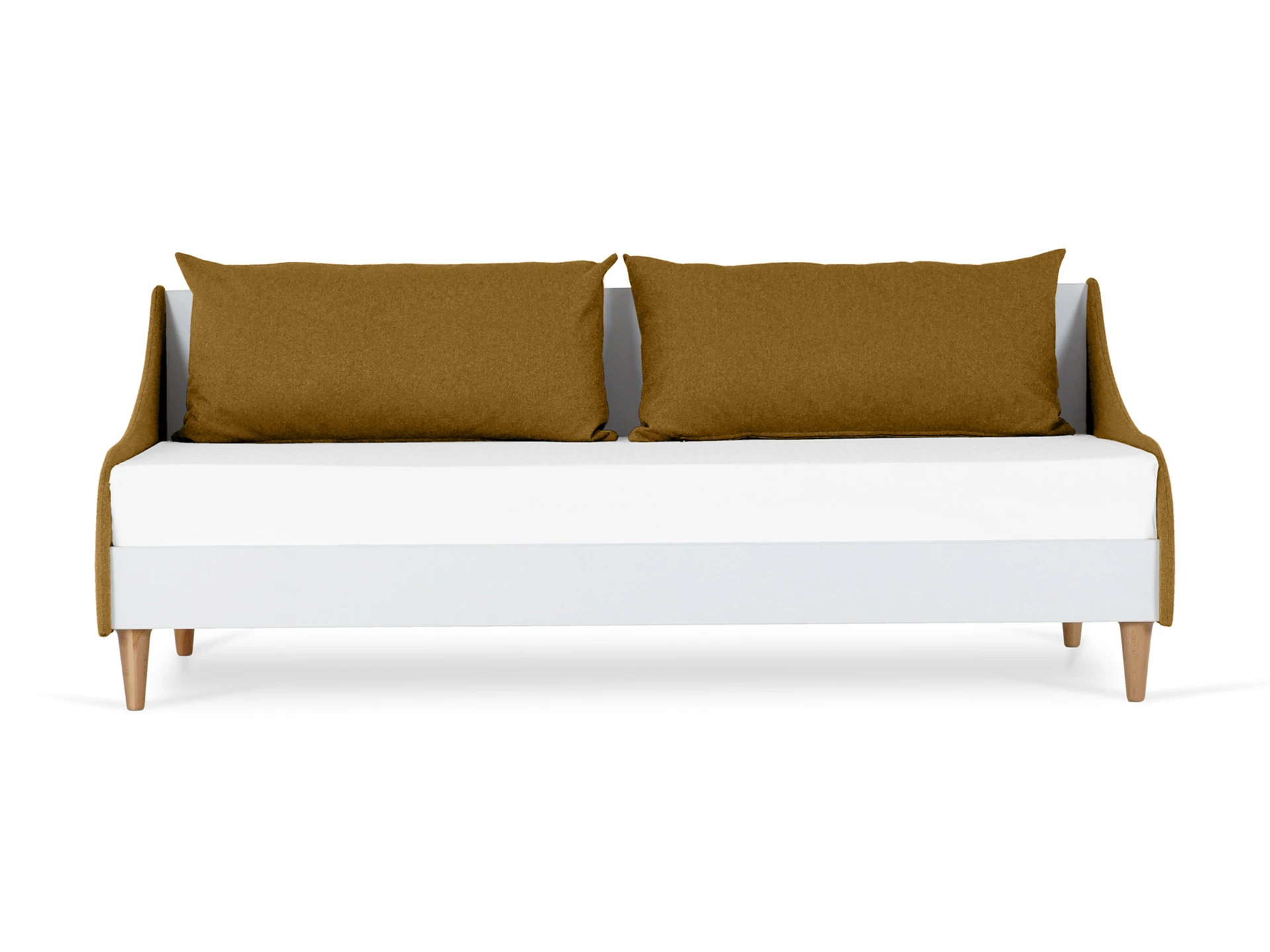 Каркас корпуса кушетки выполнен из белого гладкого ЛДСП толщиной 22 мм.. Подлокотники выполнены из МДФ толщиной 16 мм..