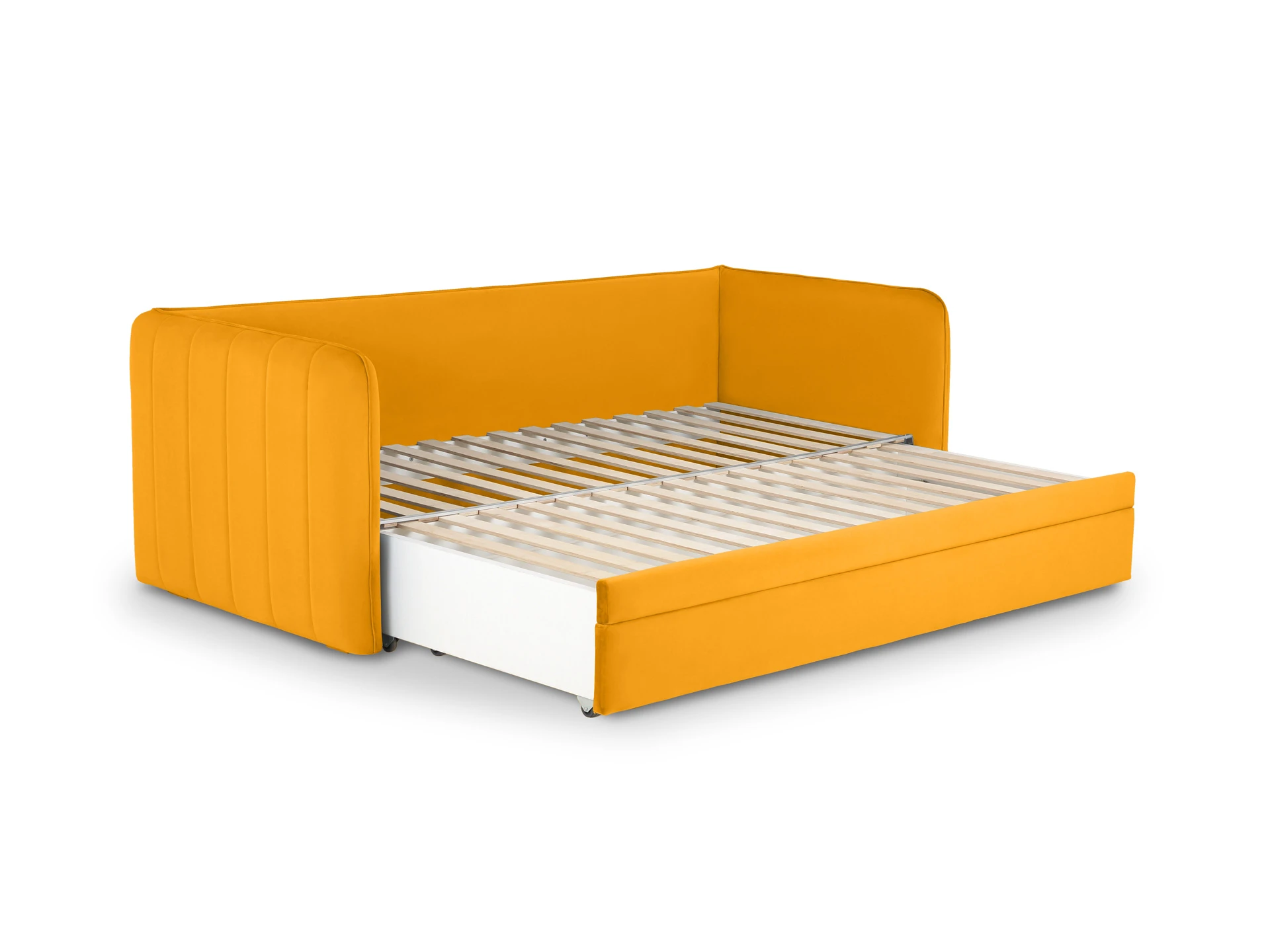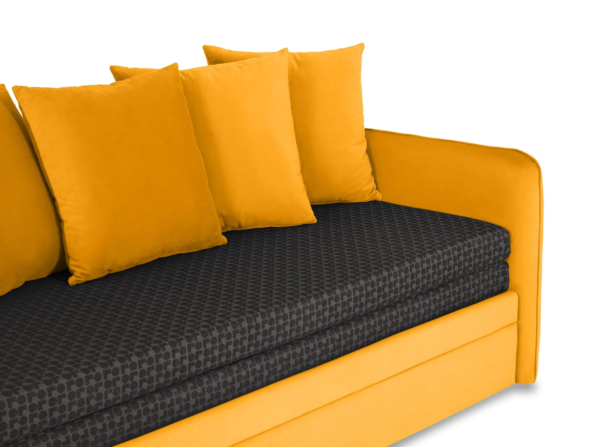 Todi — функциональная кушетка-кровать с двумя опциональными модулями. В собранном виде — это компактный диван, а в разложенном — спальное место размером 2000х1590х100 мм. Механизм трансформации — выкатной: при раскладывании достаточно выкатить вспомогательную секцию из-под сиденья и установить на нее блок ламелей. Конструкция проста и надежна для ежедневного использования. Также есть второй выкатной модуль, который можно использовать в качестве емкости для хранения или дополнительного спального места. Кушетка Todi — идеальный выбор для пространств средних и компактных размеров. Она гармонично впишется в гостиную, детскую, спальню, кухню. Каркас из деревянного бруса, в основе — породы хвойных: ель и сосна, влагостойкая березовая фанера. Мебель из этих материалов экологична, надежна и долговечна.