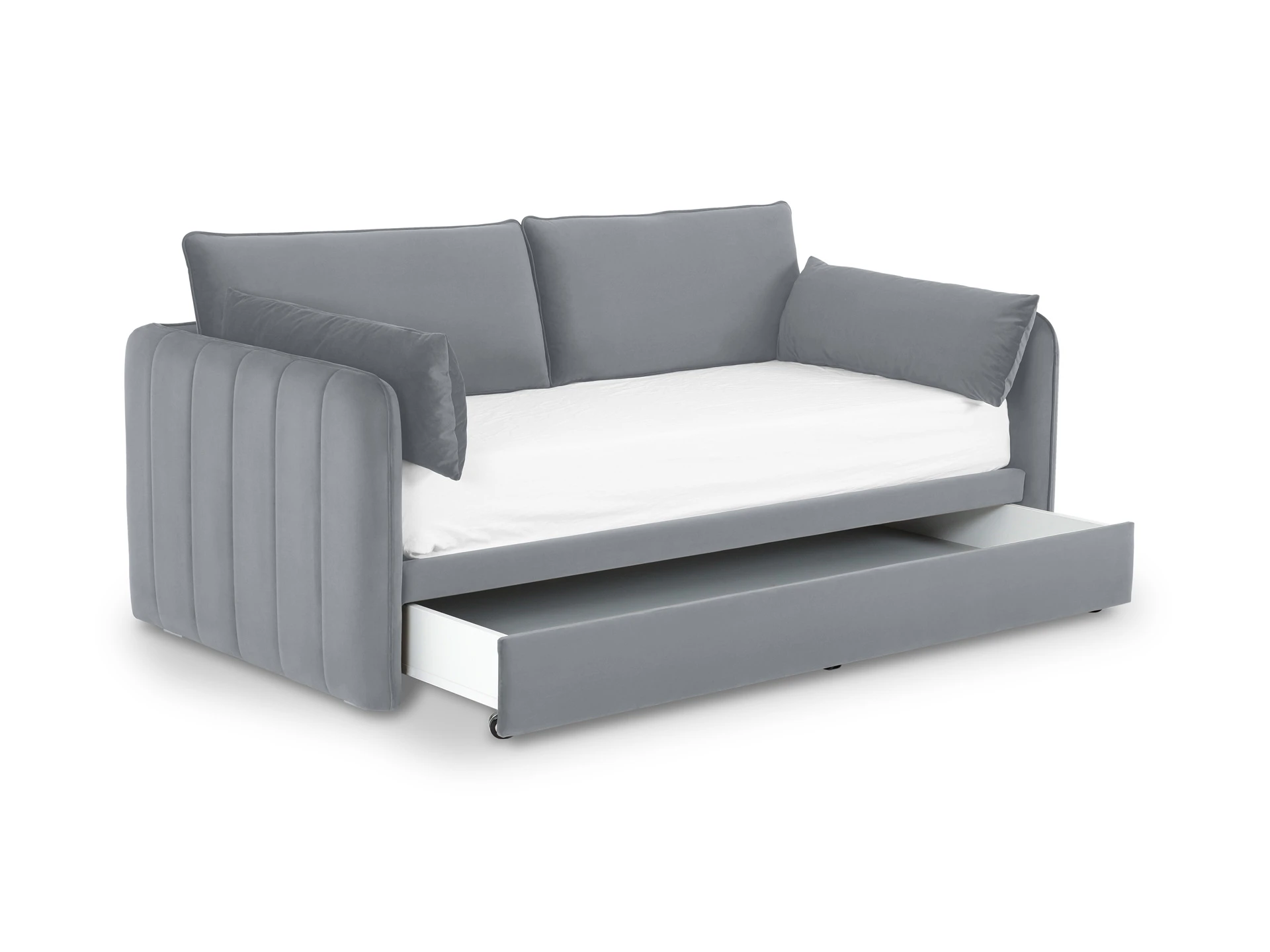 Сиденье имеет комфортную глубину и высоту, спинка оснащена двумя большими подушками из мягкого пенополиуретана, что даёт дополнительную поддержку корпусу и обеспечивает максимально расслабленные ощущения. Подлокотники также укомплектованы прямоугольными подушками из синтепуха, расположение которых можно менять по желанию. Подушки и декоративные вертикальные строчки боковин придают кушетке уютный, объёмный и многослойный вид. Выкатная секция может быть дополнительным спальным местом с нагрузкой до 100 кг. и ящиком для хранения текстиля, сезонных вещей. Можно выбрать цвет и фактуру обивки, которая будет соответствовать вашим индивидуальным предпочтениям. Стилистически нейтральная и практичная кушетка Vicari поможет в реализации разных интерьерных решений и станет элегантным дополнением домашнего пространства.