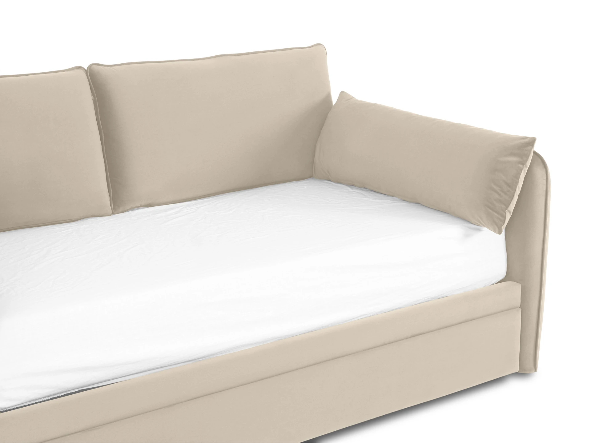 Кушетка комплектуется набором подушек, состоящим из двух больших подушек и двух малых.