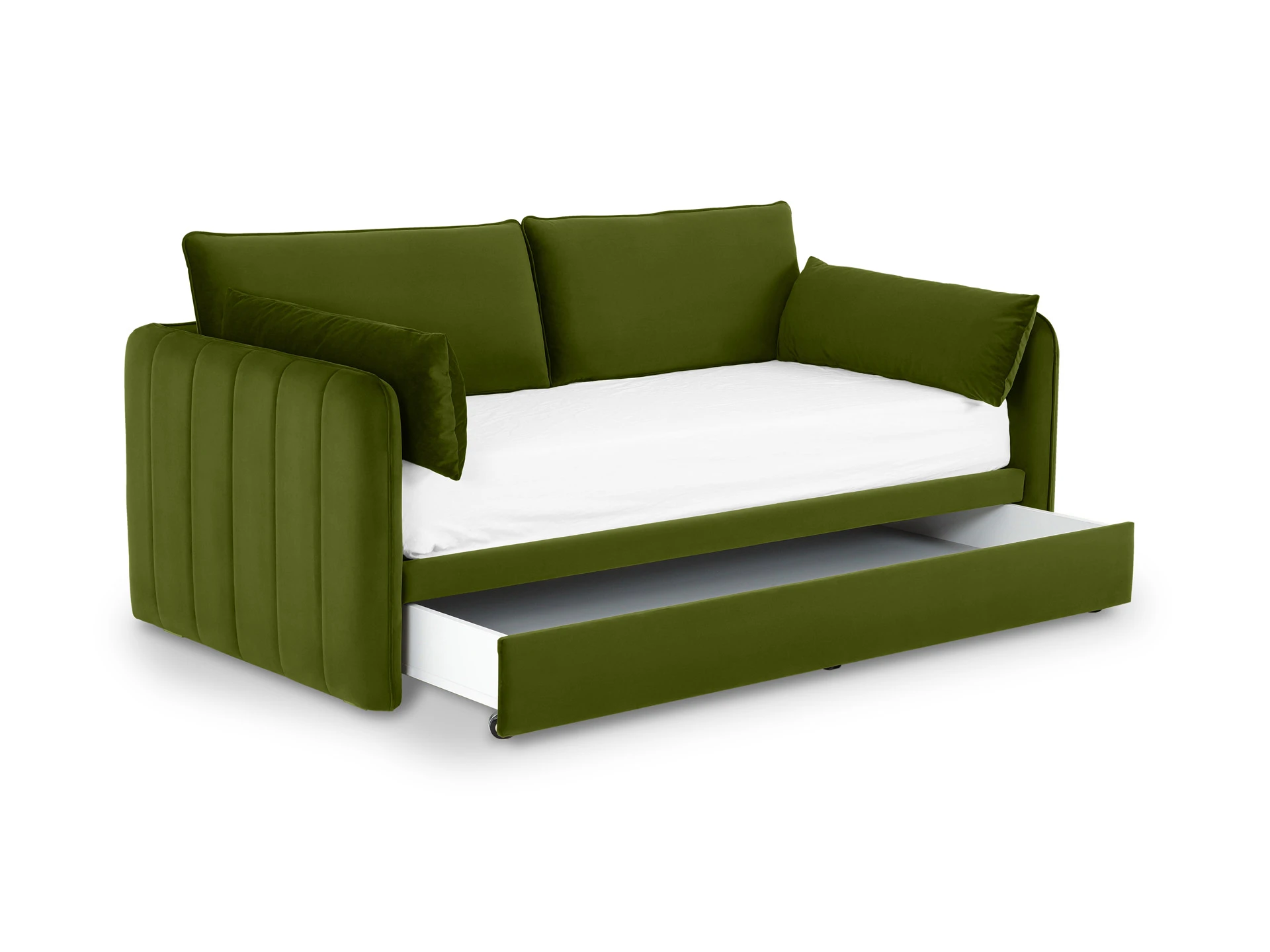 Выкатной ящик установлен на колесные опоры. Может использоваться как дополнительное спальное место, размером 1900х900 мм.