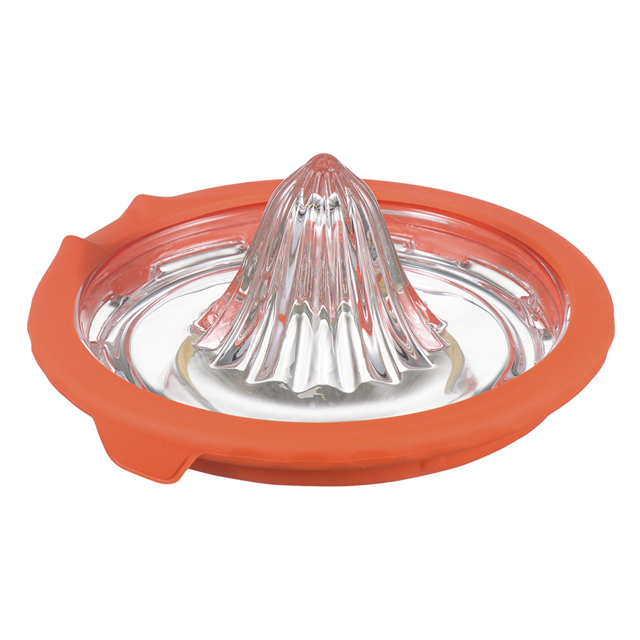 - Крышка оснащена соковыжималкой для цитрусовых и имеет по краю продолговатые отверстия для слива сока.