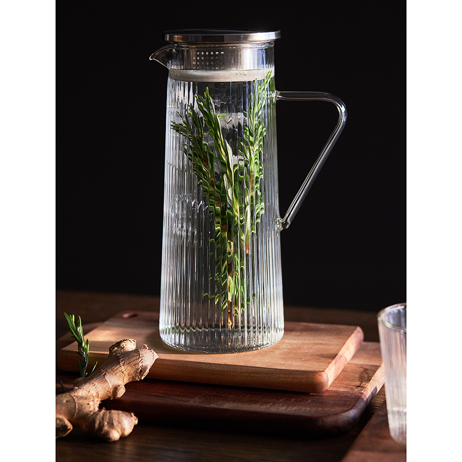 Кувшин Soft Ripples не оставит равнодушными поклонников минимализма и качественной посуды. Вы можете подавать в нем лимонад, соки и другие освежающие напитки, а также использовать для чая – боросиликатное стекло не повреждается под воздействием высоких температур.