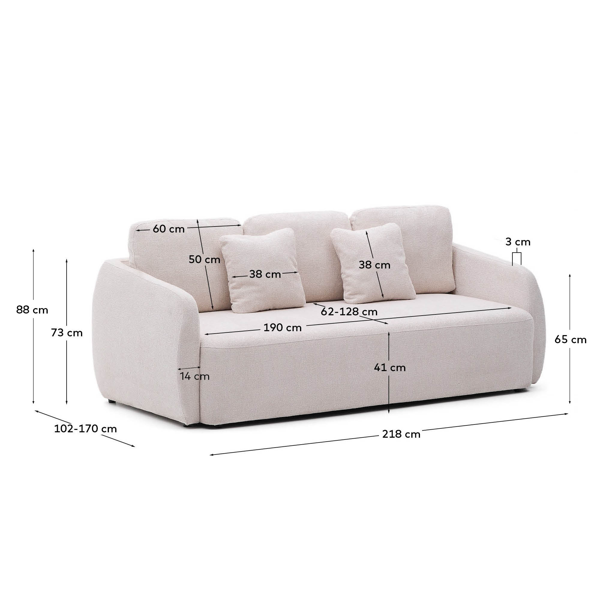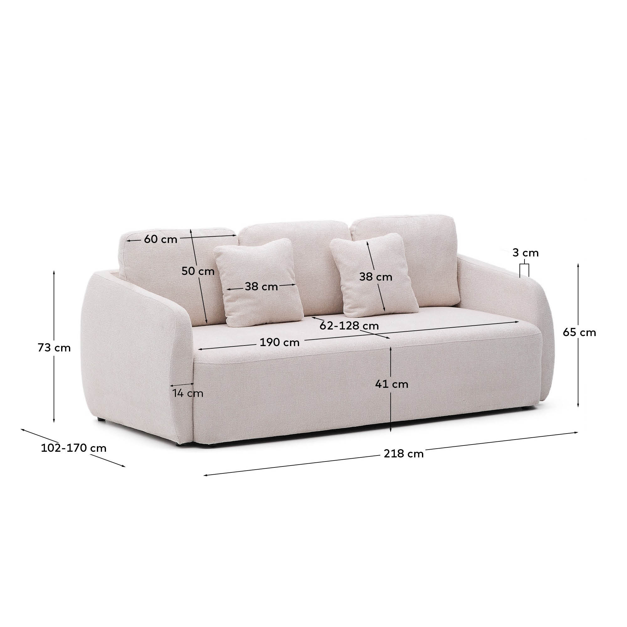 Диван-кровать Laira отличается высококачественной обивкой из шенилла с большой структурой, которая обеспечивает очень мягкое ощущение и отличную устойчивость к истиранию. Система Y-open позволяет легко и быстро трансформировать диван в удобную кровать размером 150 x 230 см в самой широкой точке благодаря синхронизированному механизму раскрытия. После раскрытия его можно использовать как непрерывный шезлонг.