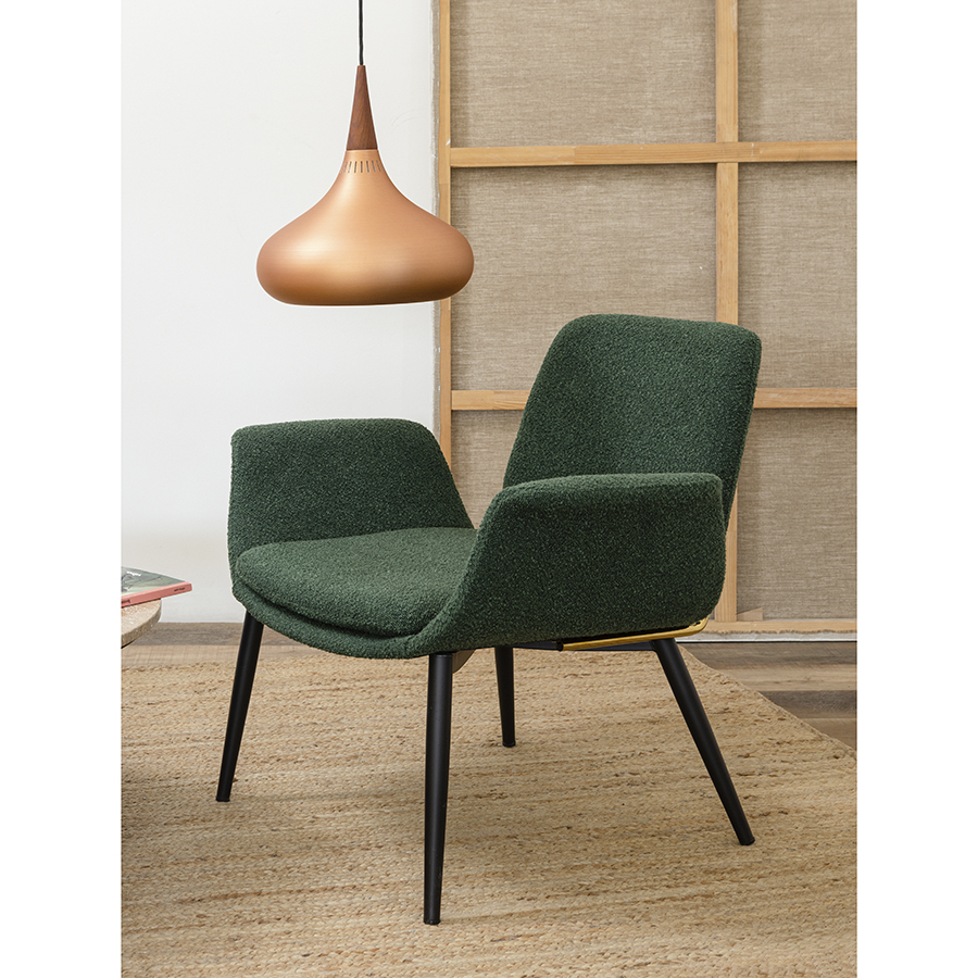 - Обивка из буклированной ткани делает кресло уютным и элегантным. Прочный и износостойкий материал долго сохраняет первоначальные качества, легко чистится.
