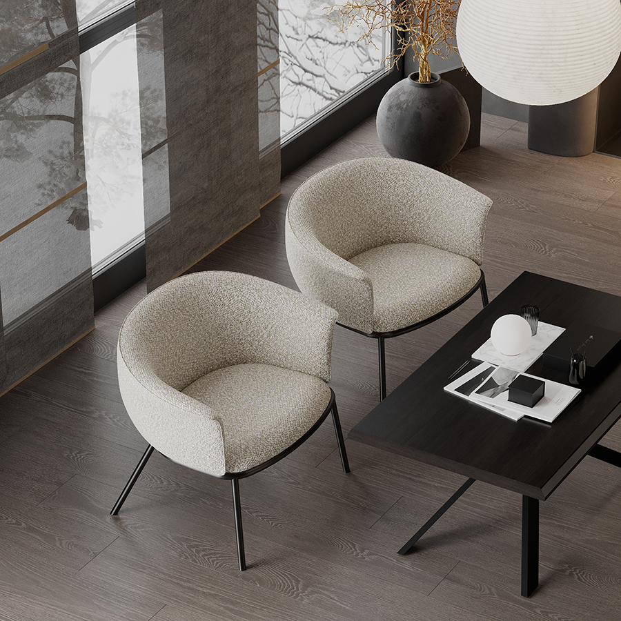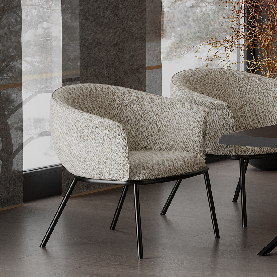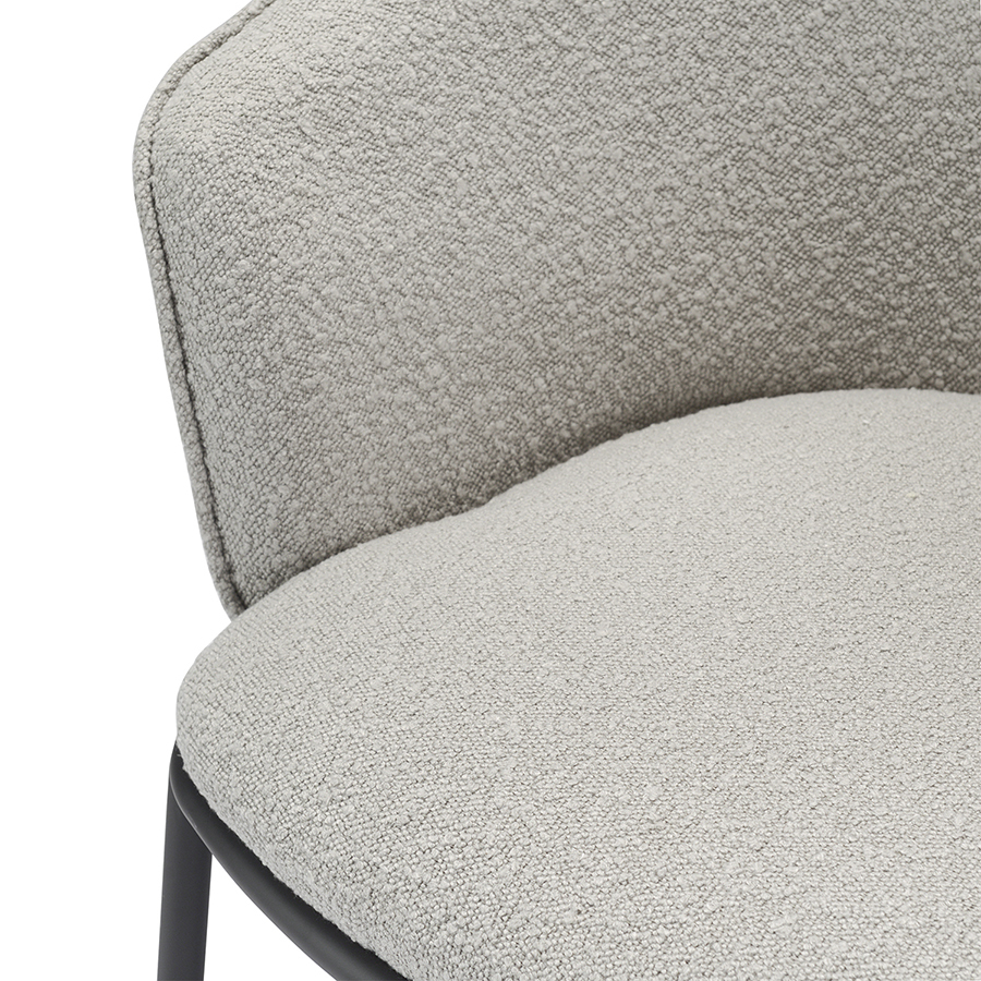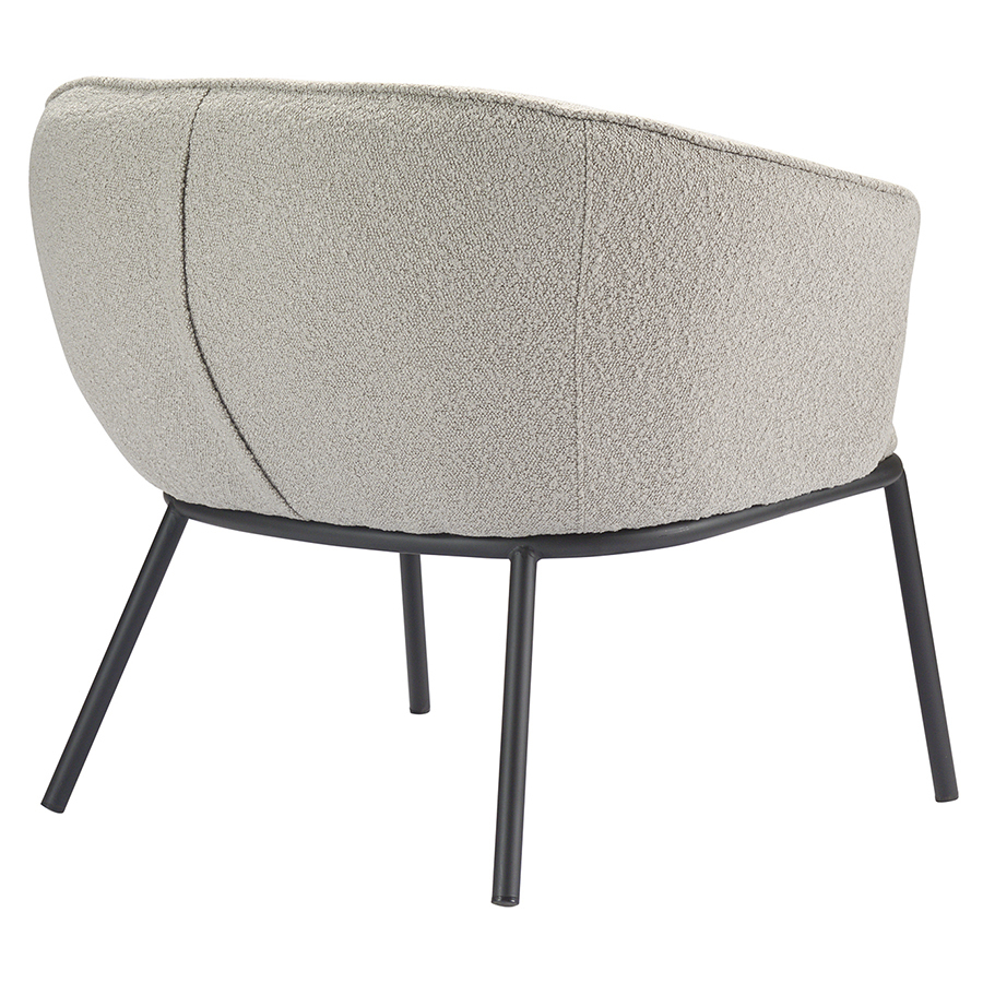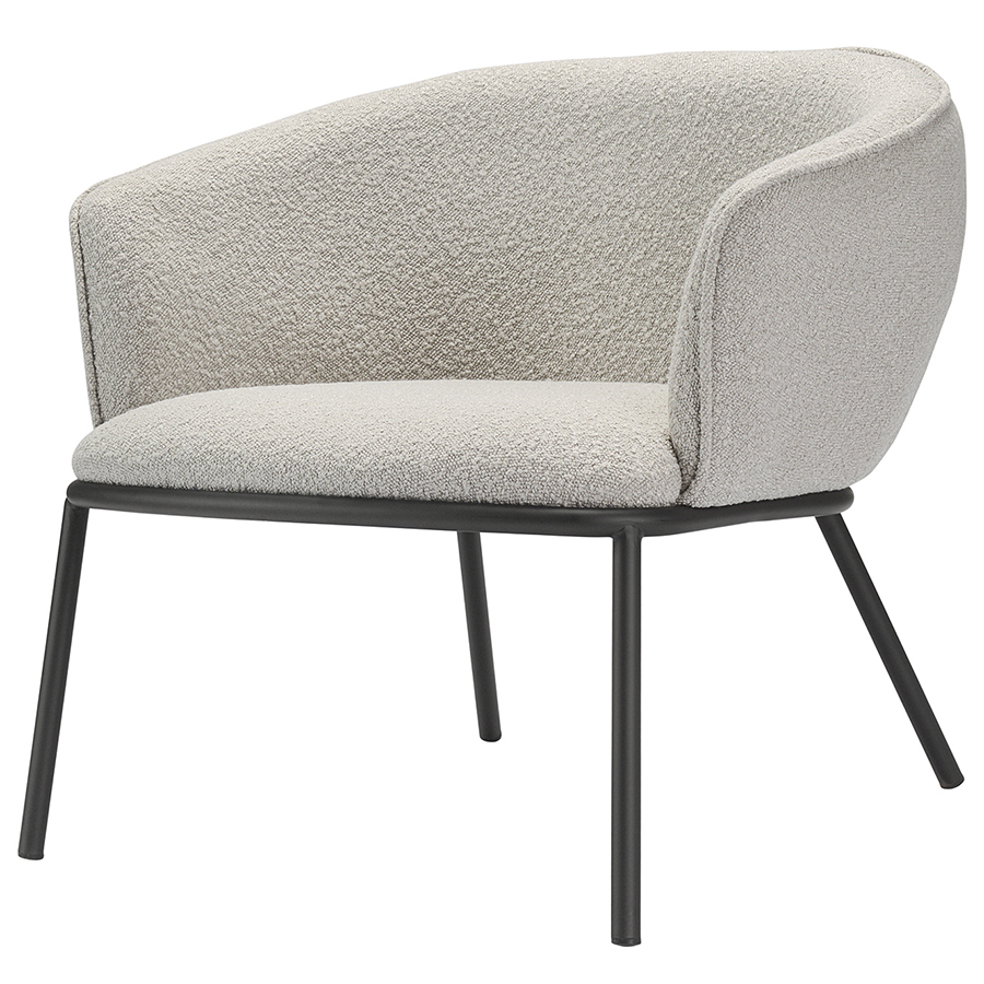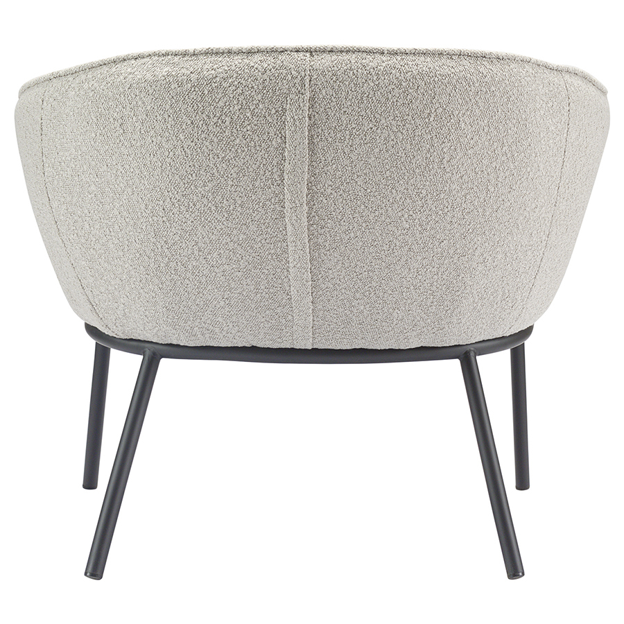Лаунж-кресло Paal удачно сочетает в себе элементы современного и классического стилей. Изюминку модели придает сплошная спинка, плавно переходящая в подлокотники, и буклированная обивка. Такой дизайн обеспечивает не только оригинальный вид, а также комфорт при сидении и приятные тактильные ощущения. Светлая мебель с лаконичным силуэтом идеально вписывается в интерьер гостиной, рабочего кабинета или спальни, оформленных в скандинавском стиле, лофт, эклектика, фьюжн, неоклассика и др.