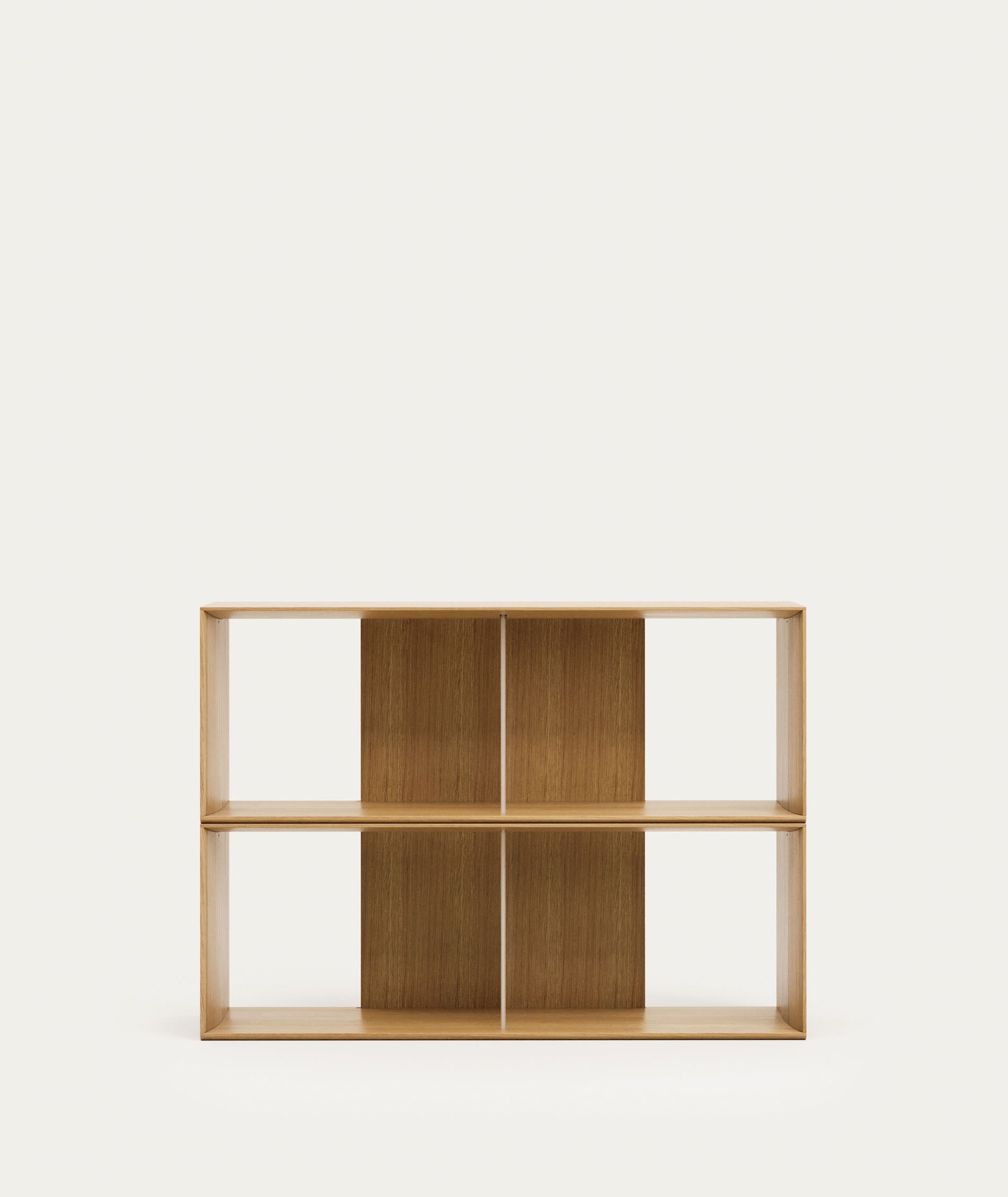 Набор из 2 больших модульных полок из шпона дуба. Можно комбинировать с остальными модулями из коллекции. Включает в себя металлические кронштейны для крепления модулей друг к другу и к стене. Ноги не включены. Для каждого модуля, стоящего на полу, требуется набор из 5 ножек.