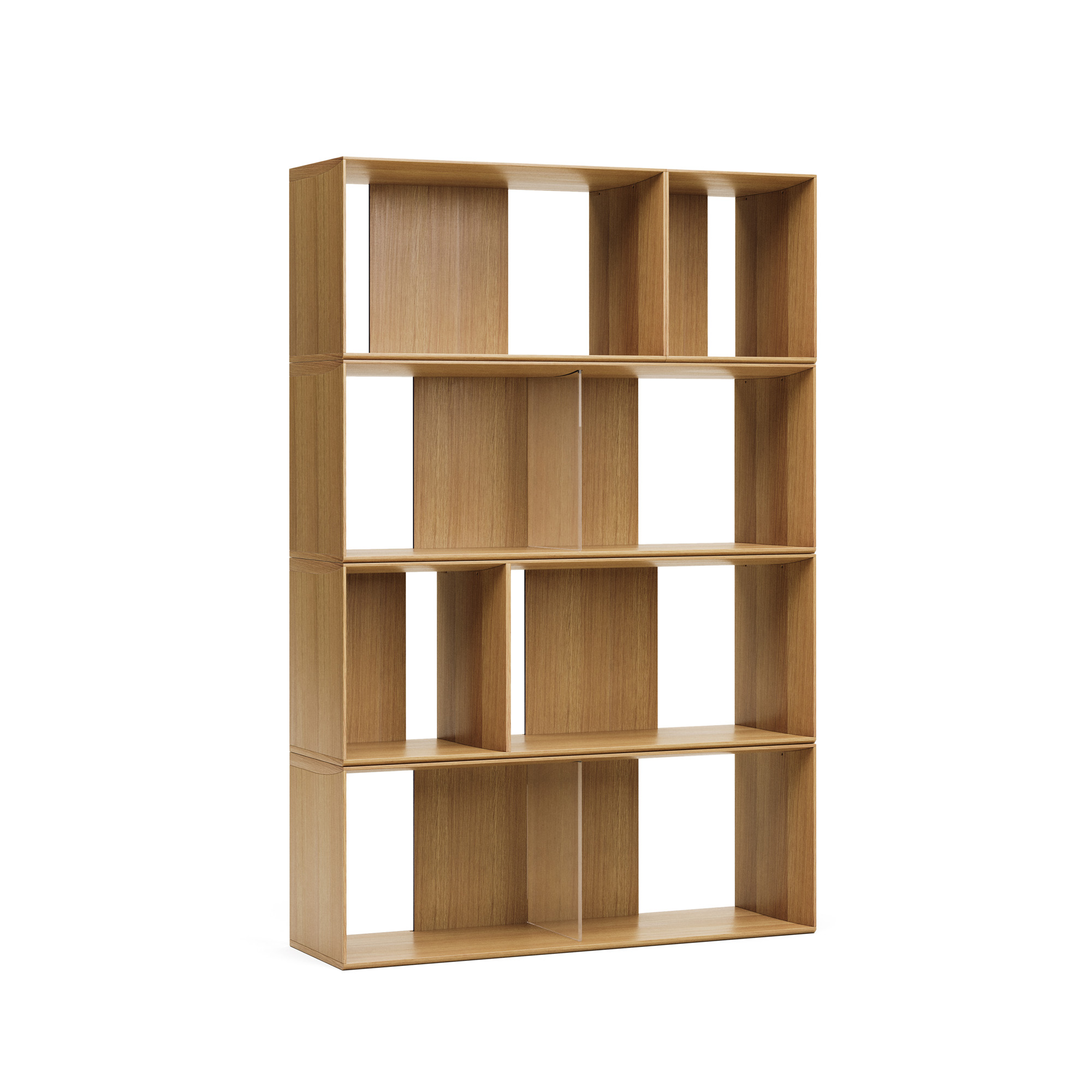 Набор из 2 малых модульных полок, 2 средних модульных полок и 2 больших модульных полок из дубового шпона. Можно комбинировать с остальными модулями из коллекции. Включает в себя металлические кронштейны для крепления модулей друг к другу и к стене. Ноги не включены. Для каждого модуля, стоящего на полу, требуется набор из 5 ножек.