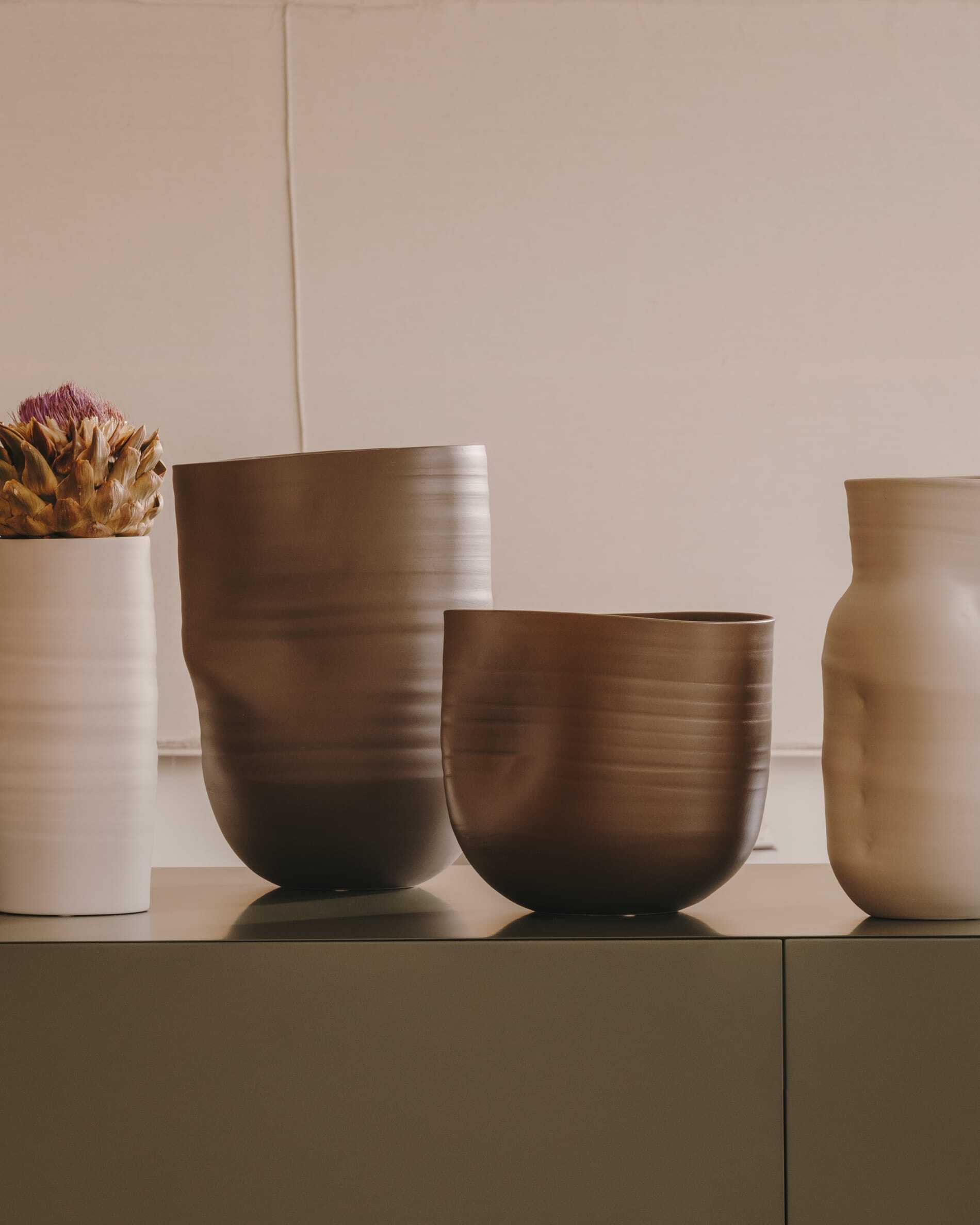 Коллекция Macarelleta – это вазы и поднос, созданные из коричневой глины. Их форма выглядит недоработкой мастера, что является главной особенностью изделий. Ведь благодаря такой технологии не будет двух одинаковых изделий. Добавьте к своей обстановке уникальные детали. Коллекция Macarelleta способна преобразить ваше пространство, как с цветами, так и без них.