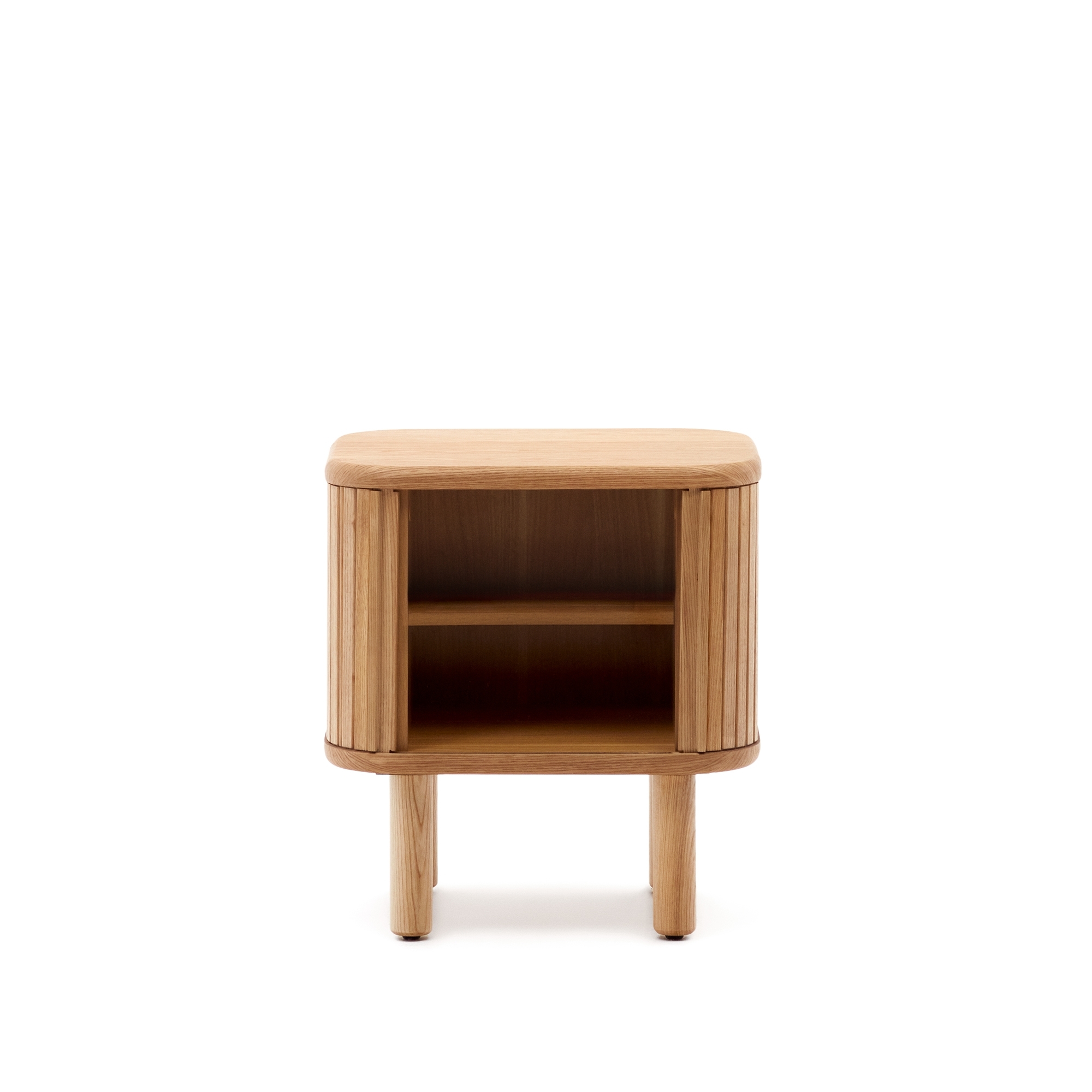 Команда Kave Home создала коллекцию Mailen современного дизайна с закругленными формами, выполненную из ясеневого шпона и раздвижными дверями с деревянными рейками, которые делают ее настоящим героем.