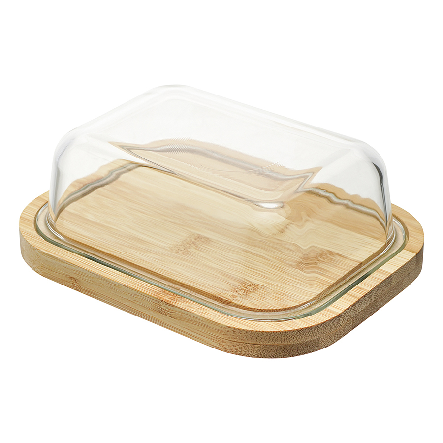 Материал: боросиликатное стекло, бамбук. Размеры масленки: 18х14х6 см. Размеры стеклянной крышки: 13,5х9х4 см. Объем: 640 мл.
