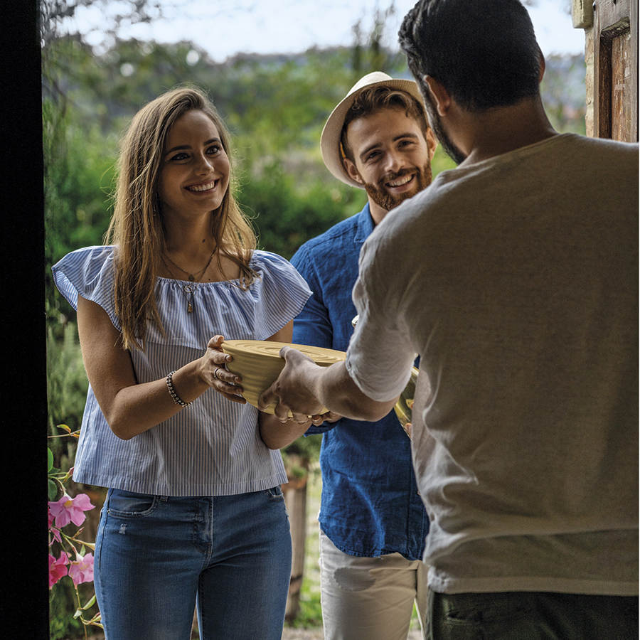 Прочная миска из переработанного пластика подойдет для подачи салатов, фрутов и других блюд.