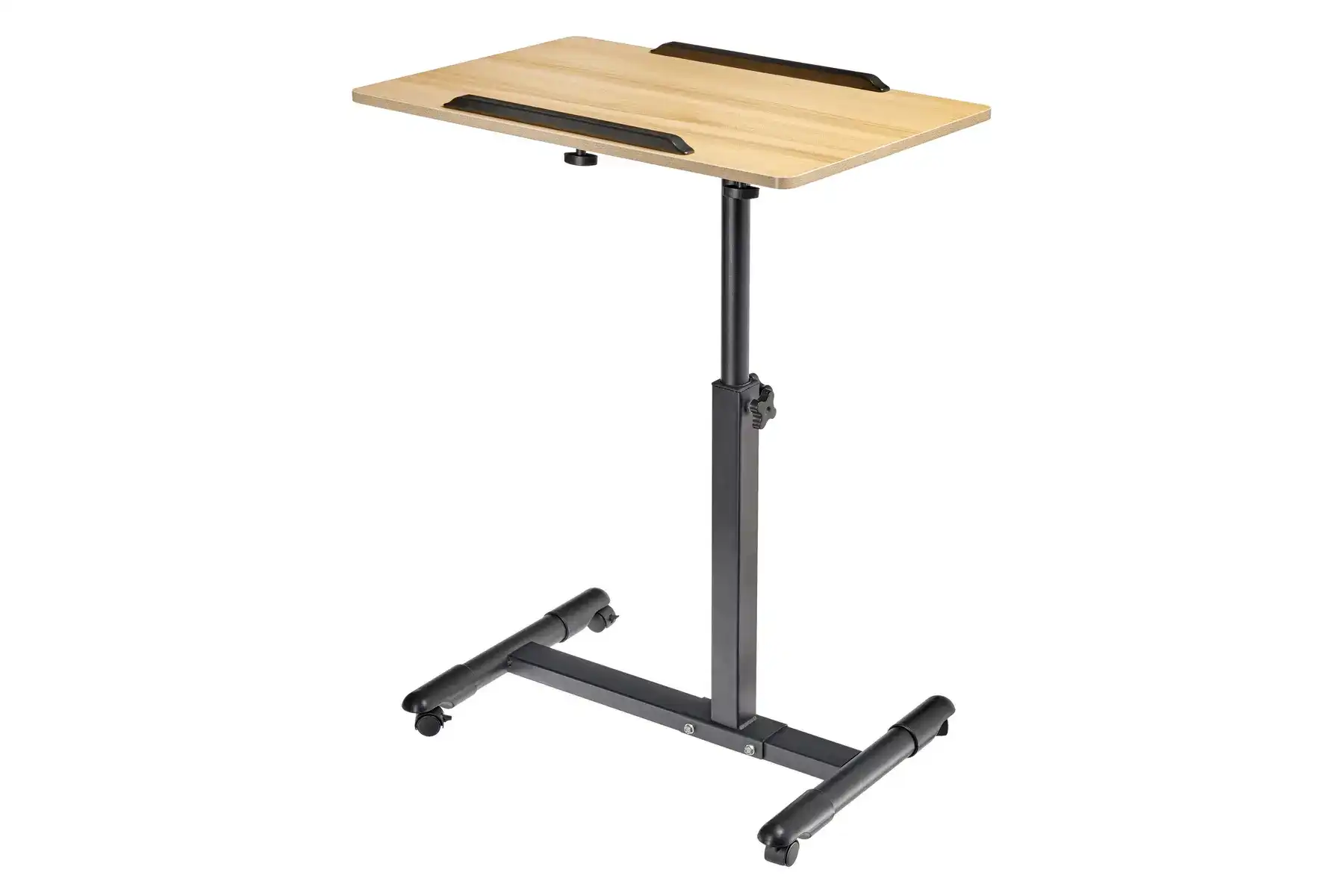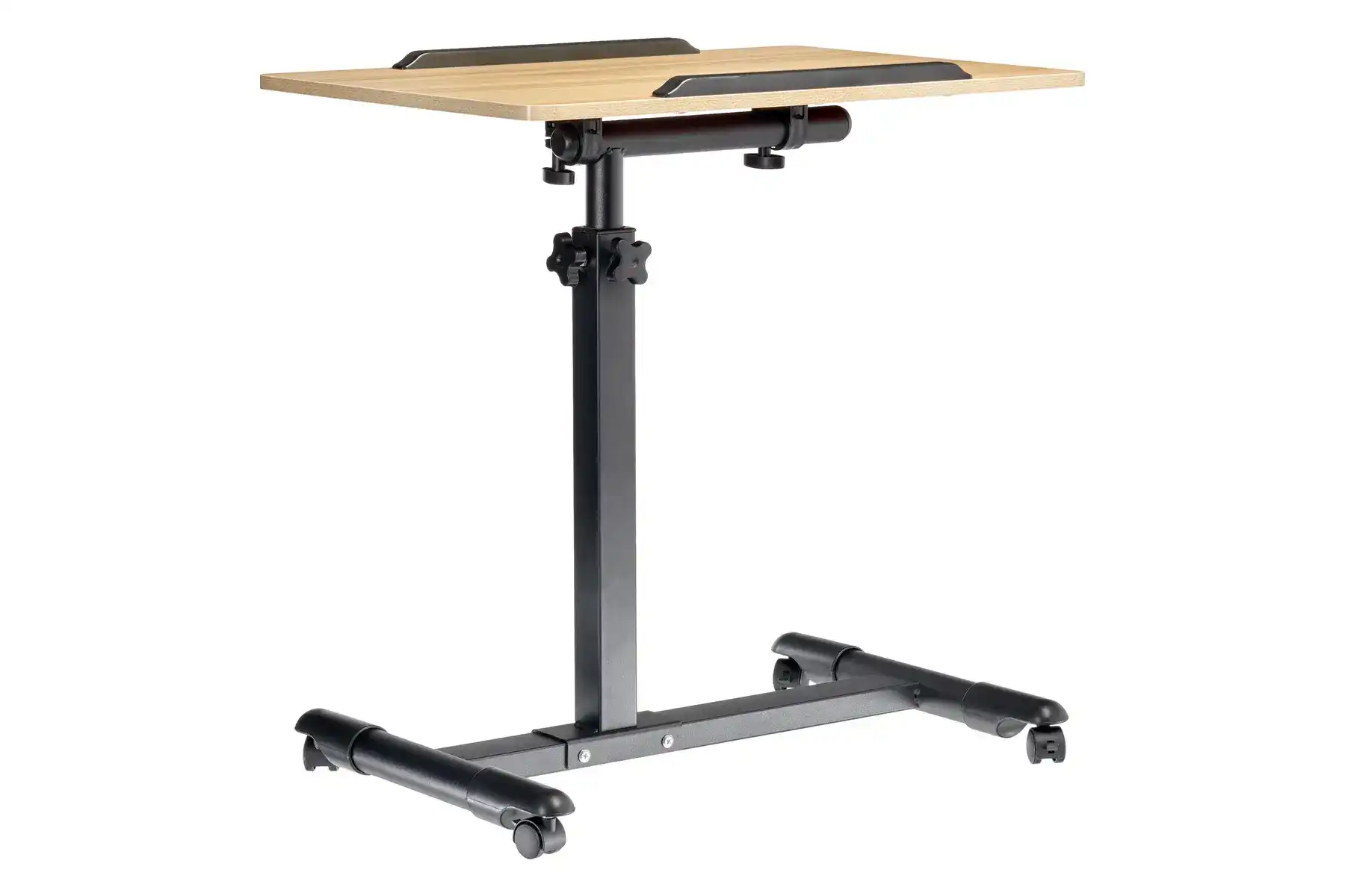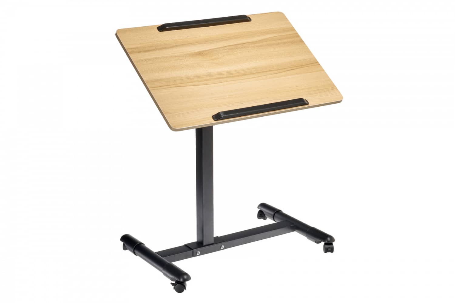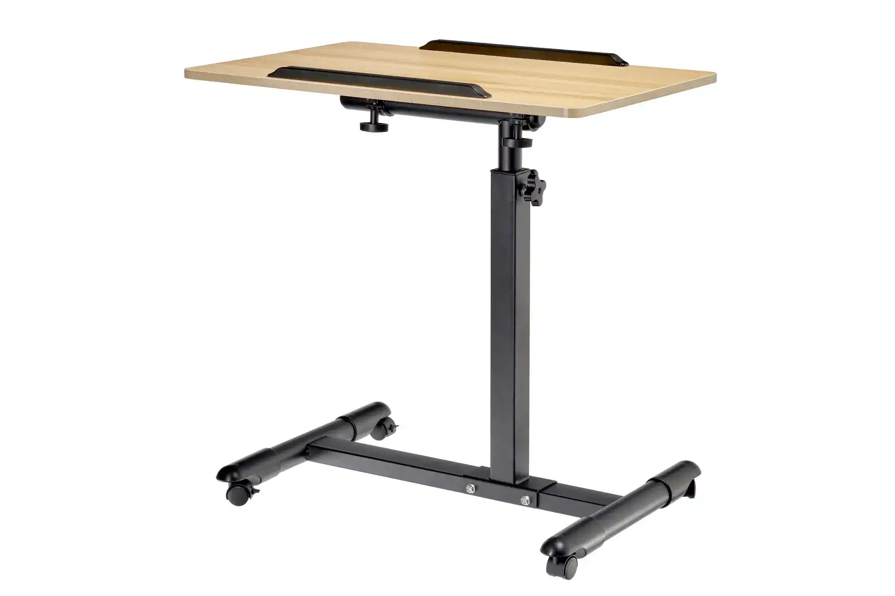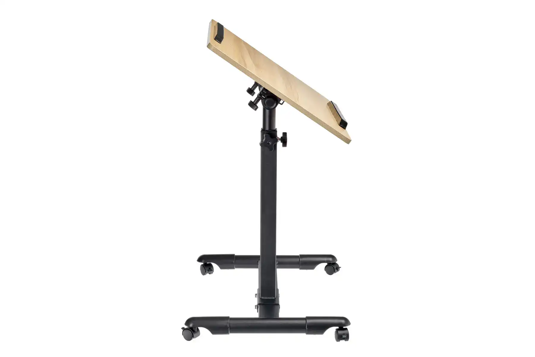Цвет: столешница - светлое дерево, ножка - черный, ограничители - черный.