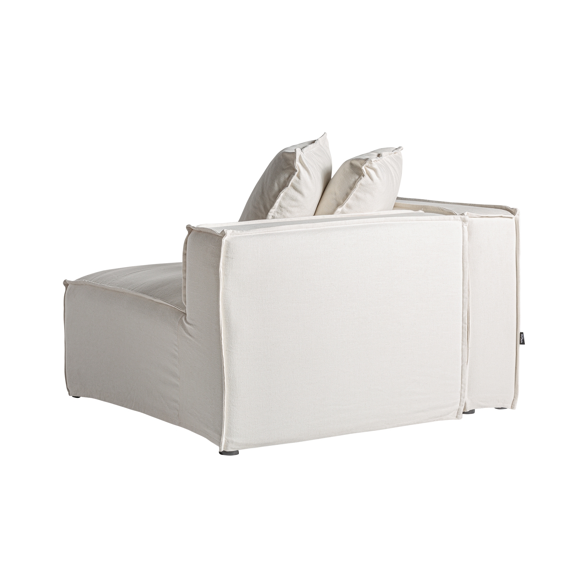 Модуль углового дивана левый виролле, белый однотонный цвет, колониальный стиль. Изготовлен из льна в сочетании с хлопком и поролоном. Изделие съемное. Совместим с: 36088.