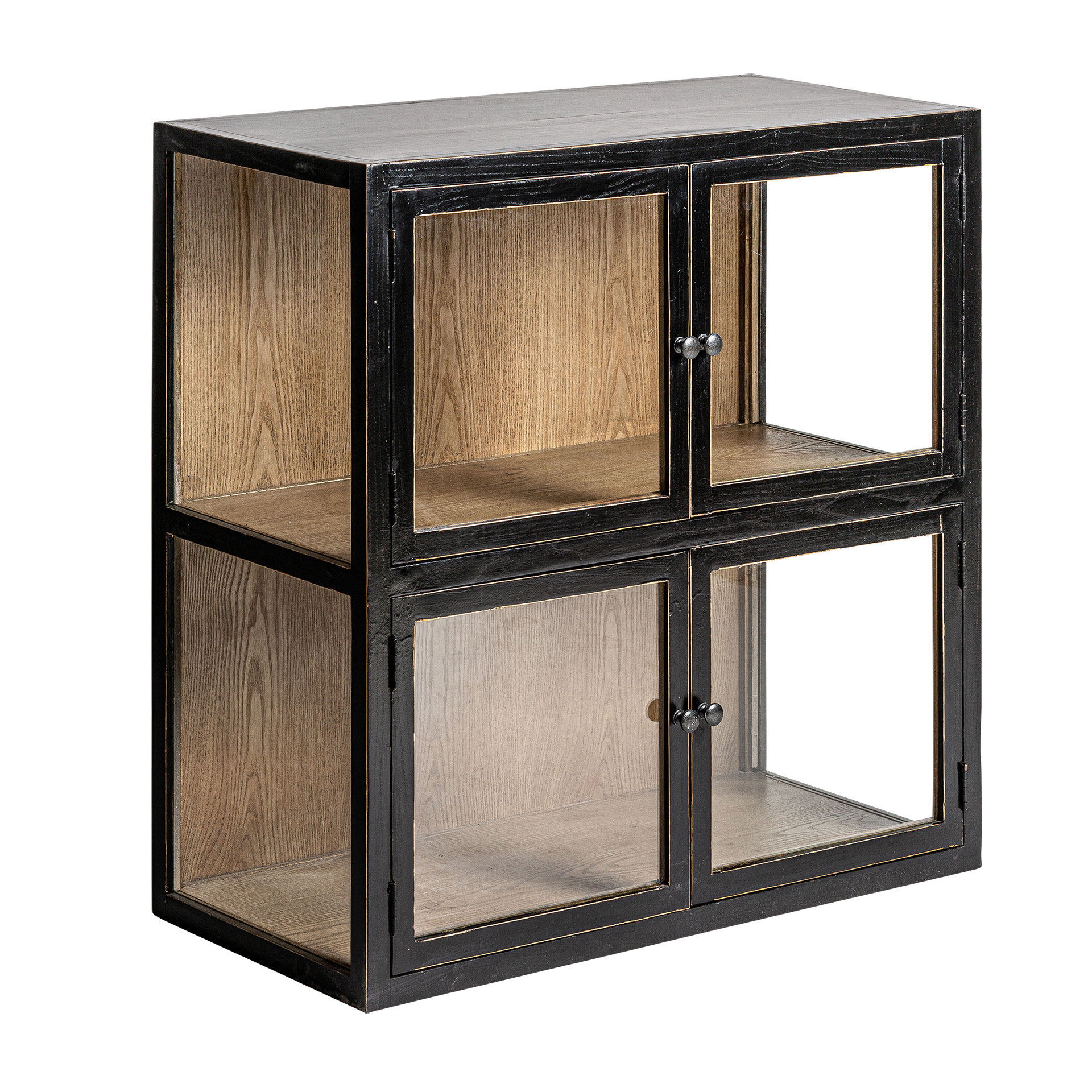 Модульная витрина HEMYE, черный/натуральный цвет, колониальный стиль. Изготовлен из переработанной сосновой древесины в сочетании с хрусталем.
