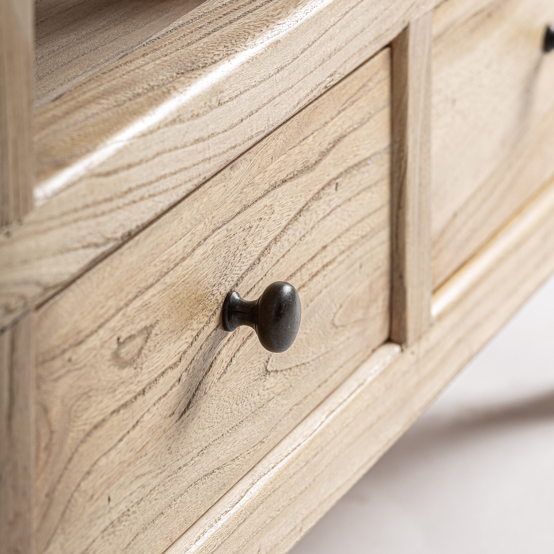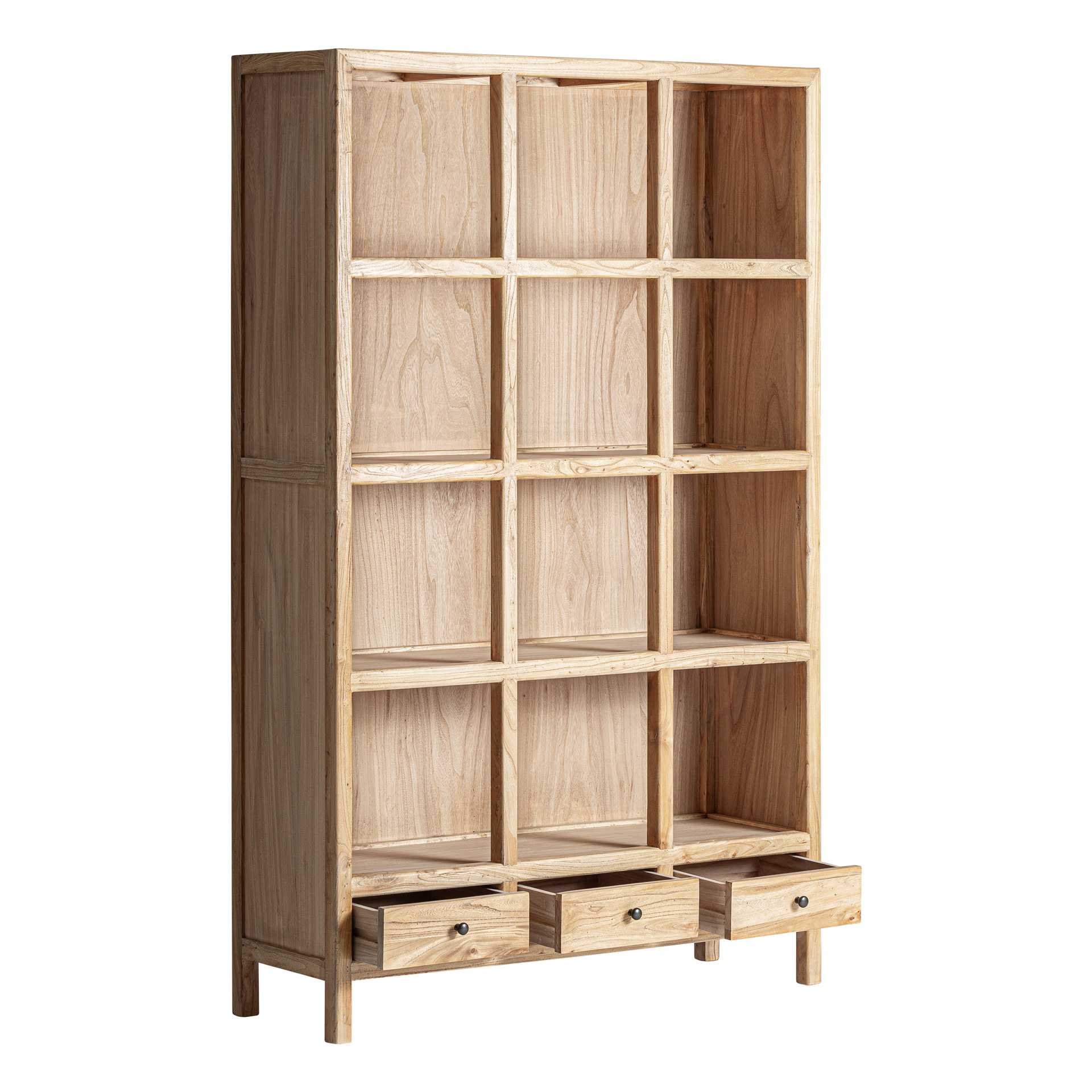 Модульный книжный шкаф Brecey в колониальном стиле. Изготовлен из переработанной древесины вяза, светло-коричневого цвета.