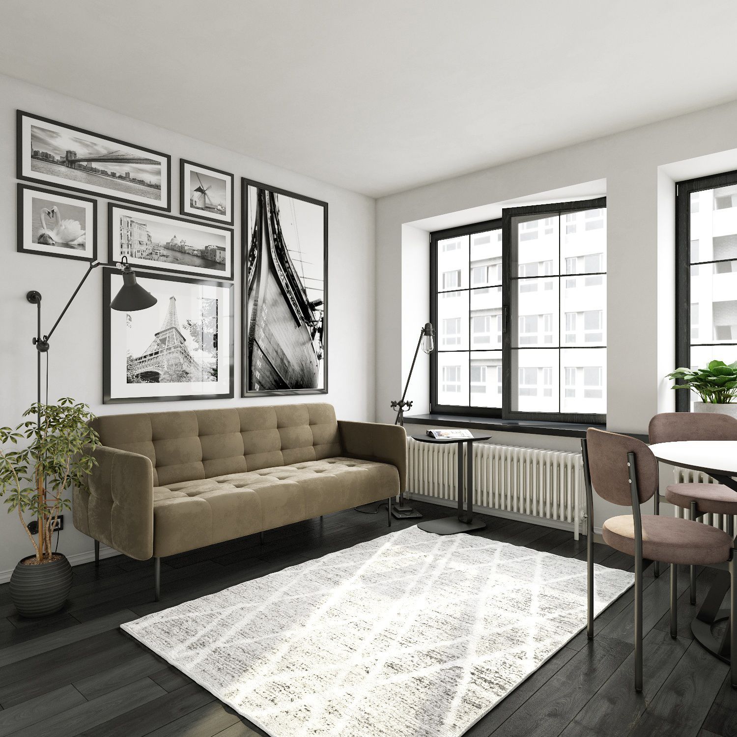 Monaco диван-кровать прямой с подлокотниками, трехместный, бархат пепельно-бежевый 25