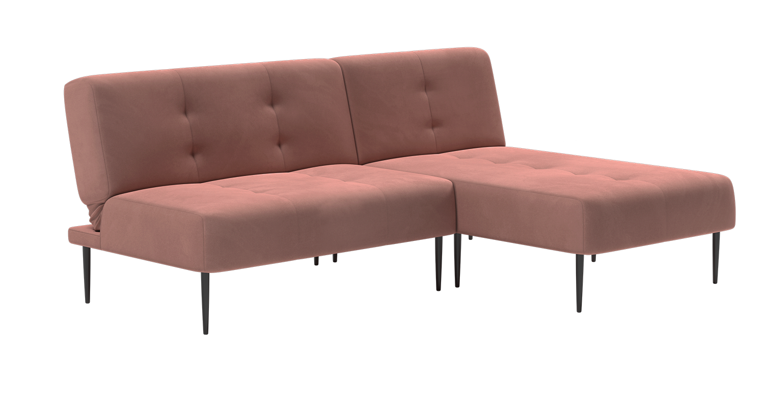 Monaco диван-кровать с шезлонгом, без подлокотников, бархат пудровый 15