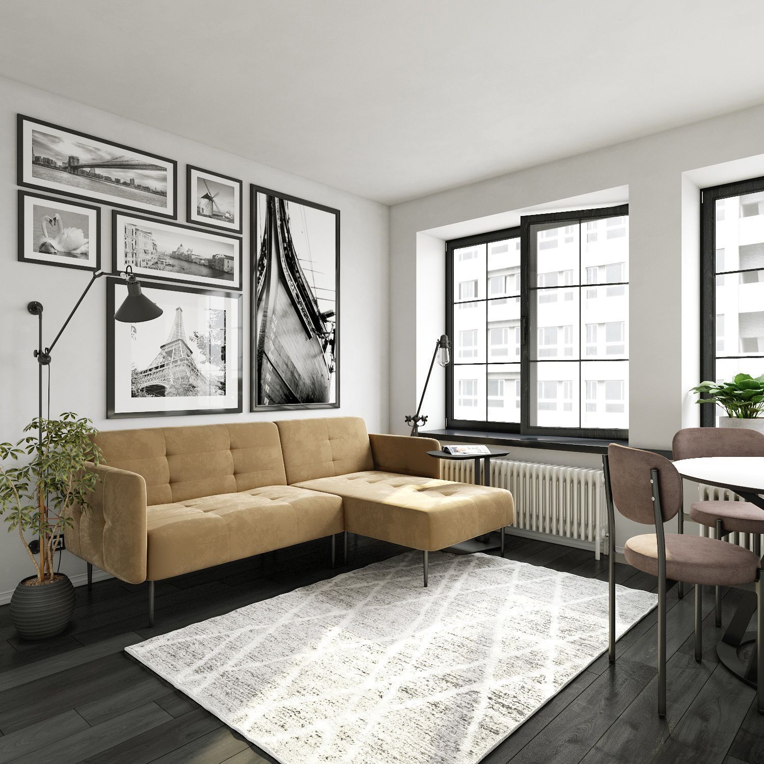 Monaco диван-кровать с шезлонгом, с подлокотниками, бархат бежевый 5