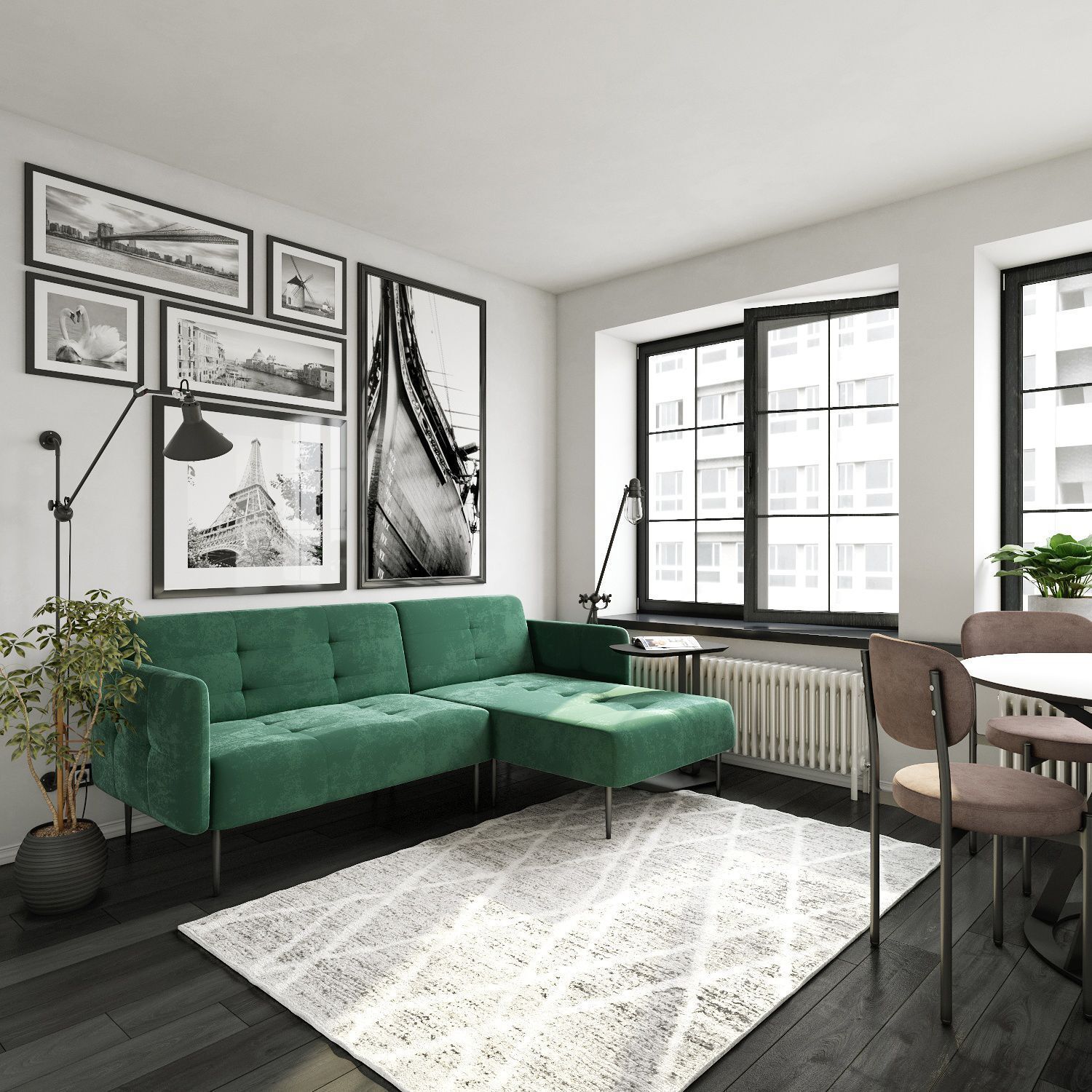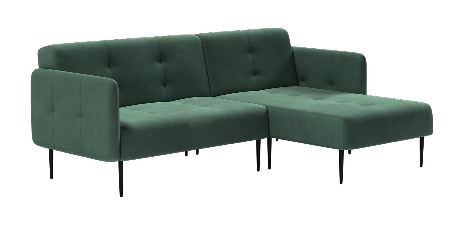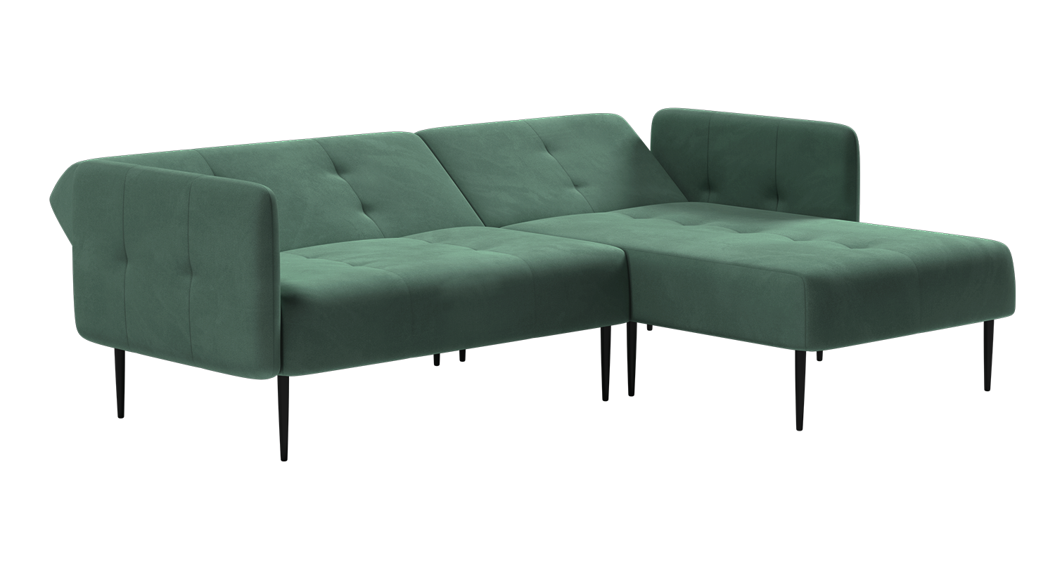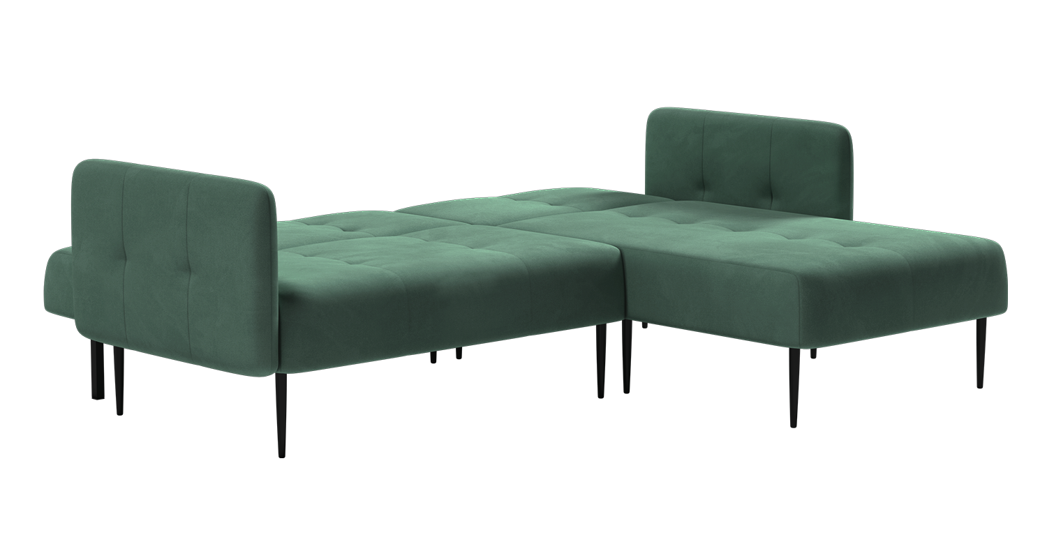 Monaco диван-кровать с шезлонгом, с подлокотниками, бархат зеленый 19