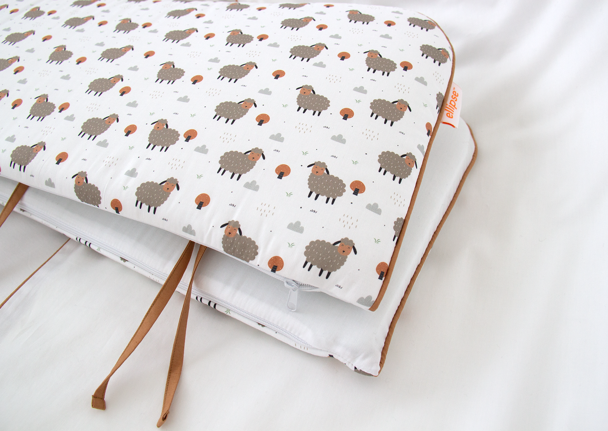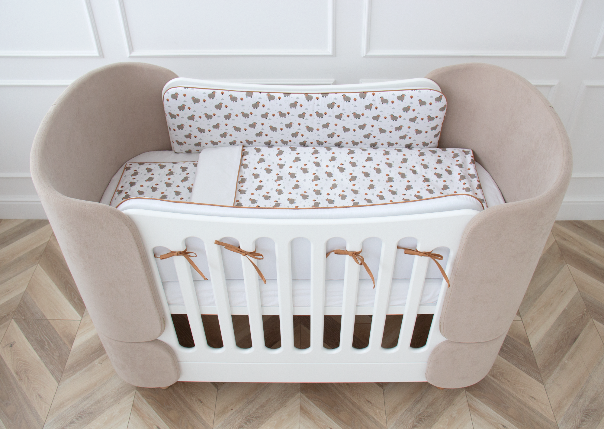 Мягкие бортики для кроватки KIDI soft "Серые овечки" (кант, сатин)