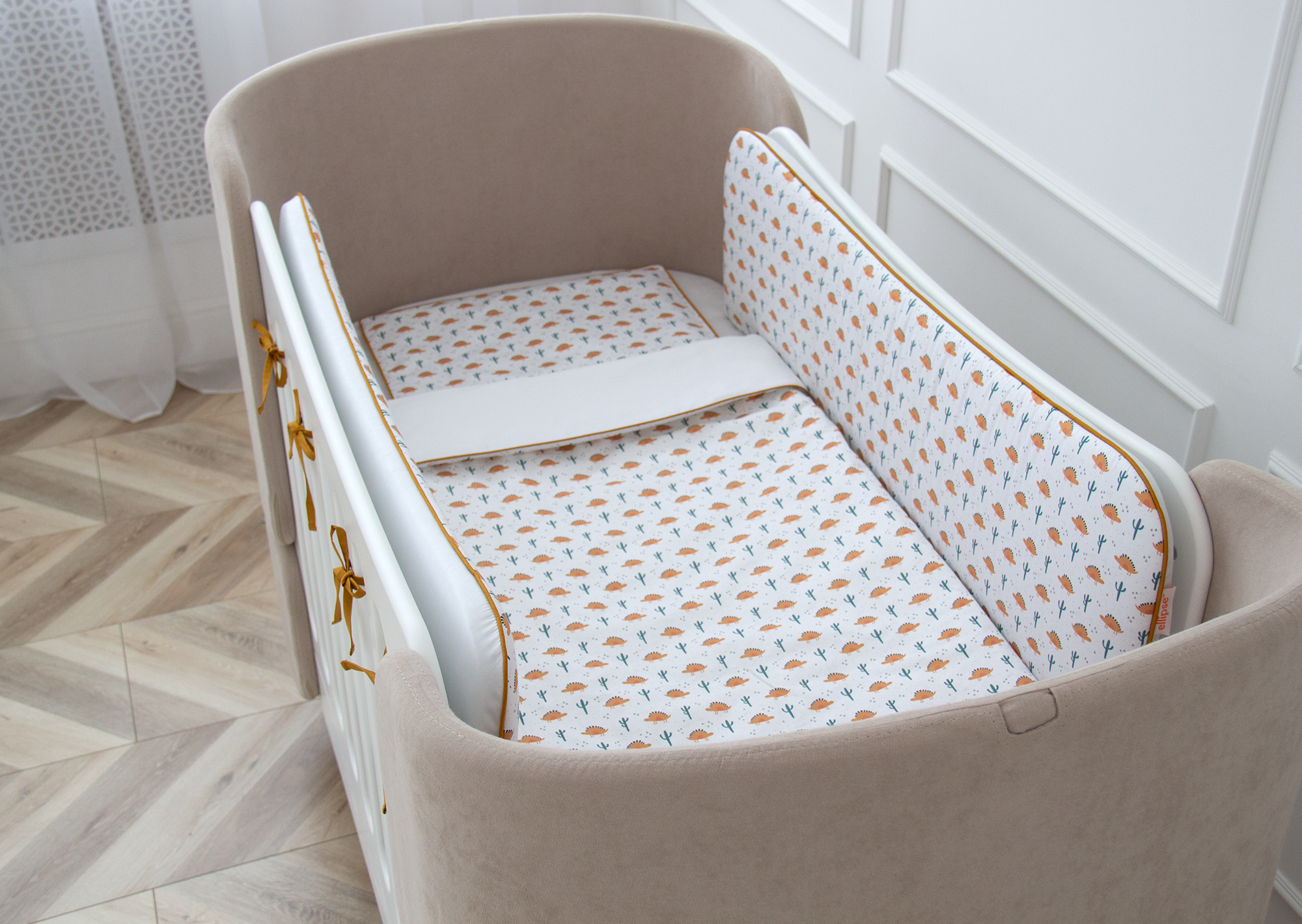 Комплект мягких защитных бортиков для кроватки KIDI soft включает 2 мягких бортика на боковые стенки кроватки В бортики вшита скрытая молния, поэтому их удобно стирать, предварительно вынув наполнитель Сатин – натуральная хлопковая ткань мягкая и приятная на ощупь Для плетения используют две нити: более плотную для основы, и тонкую крученую для лицевой стороны Благодаря этому сатиновая ткань имеет гладкую, шелковистую поверхность