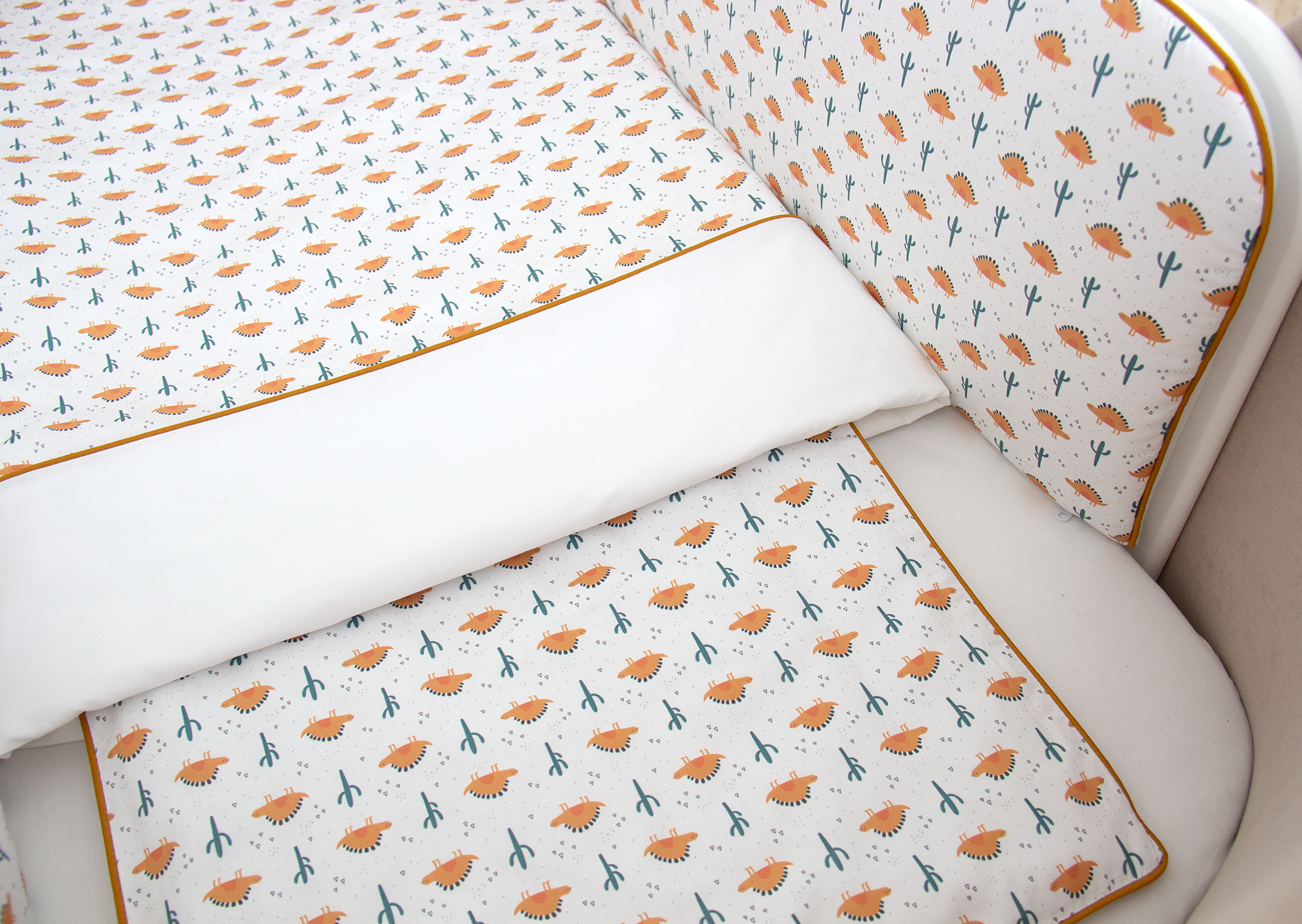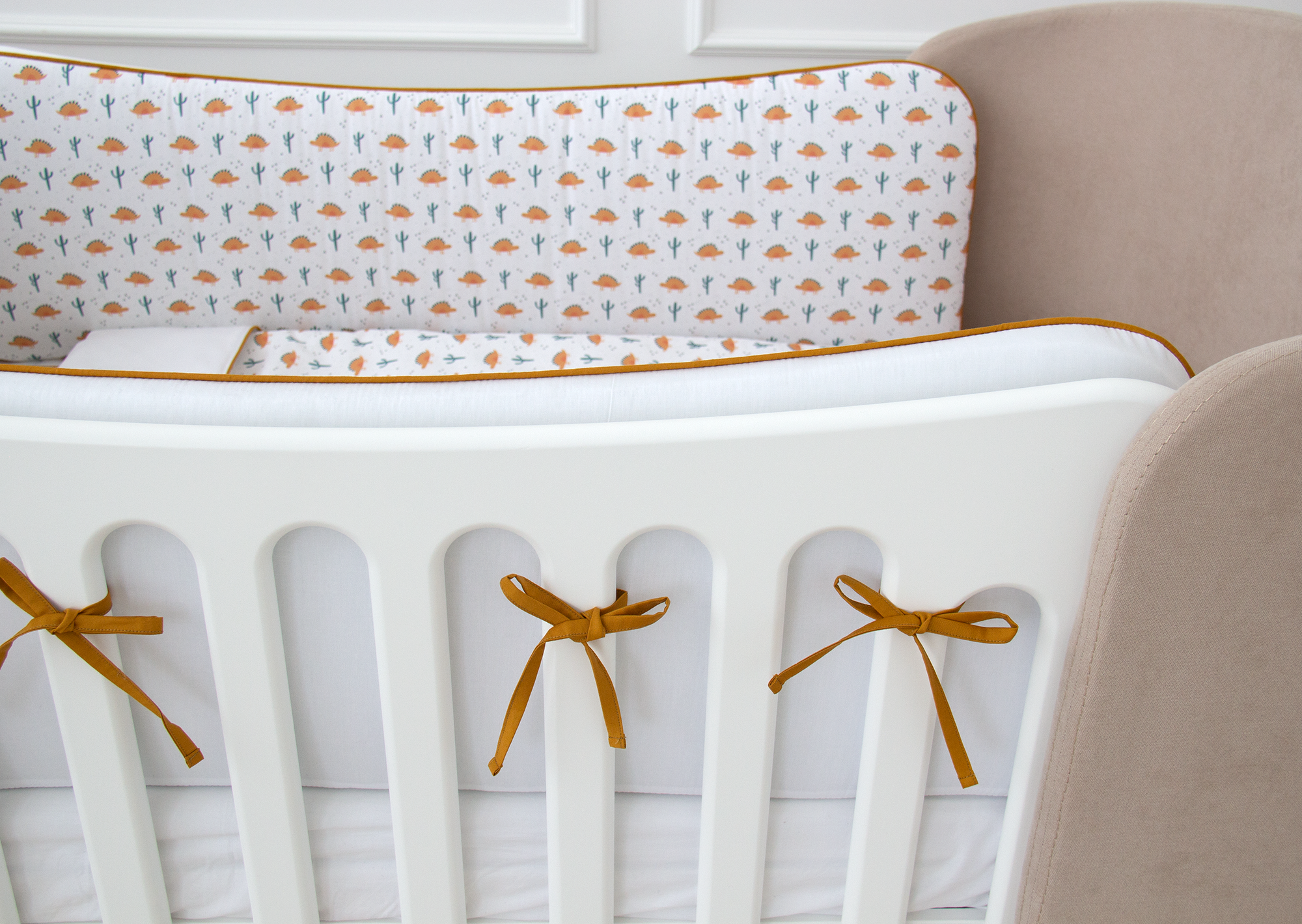 Мягкие бортики для кроватки KIDI soft "Жёлтые динозаврики" (кант, сатин)