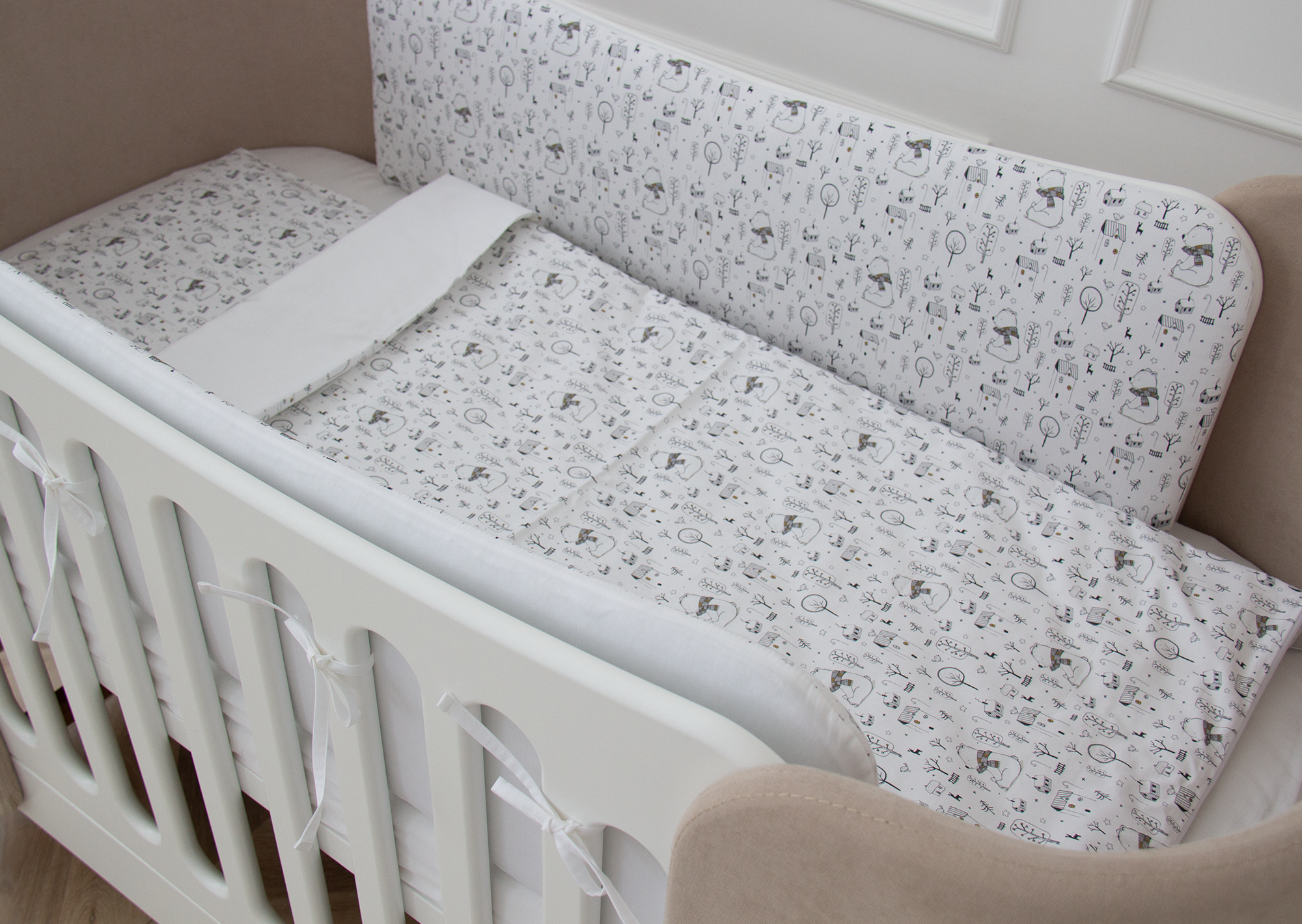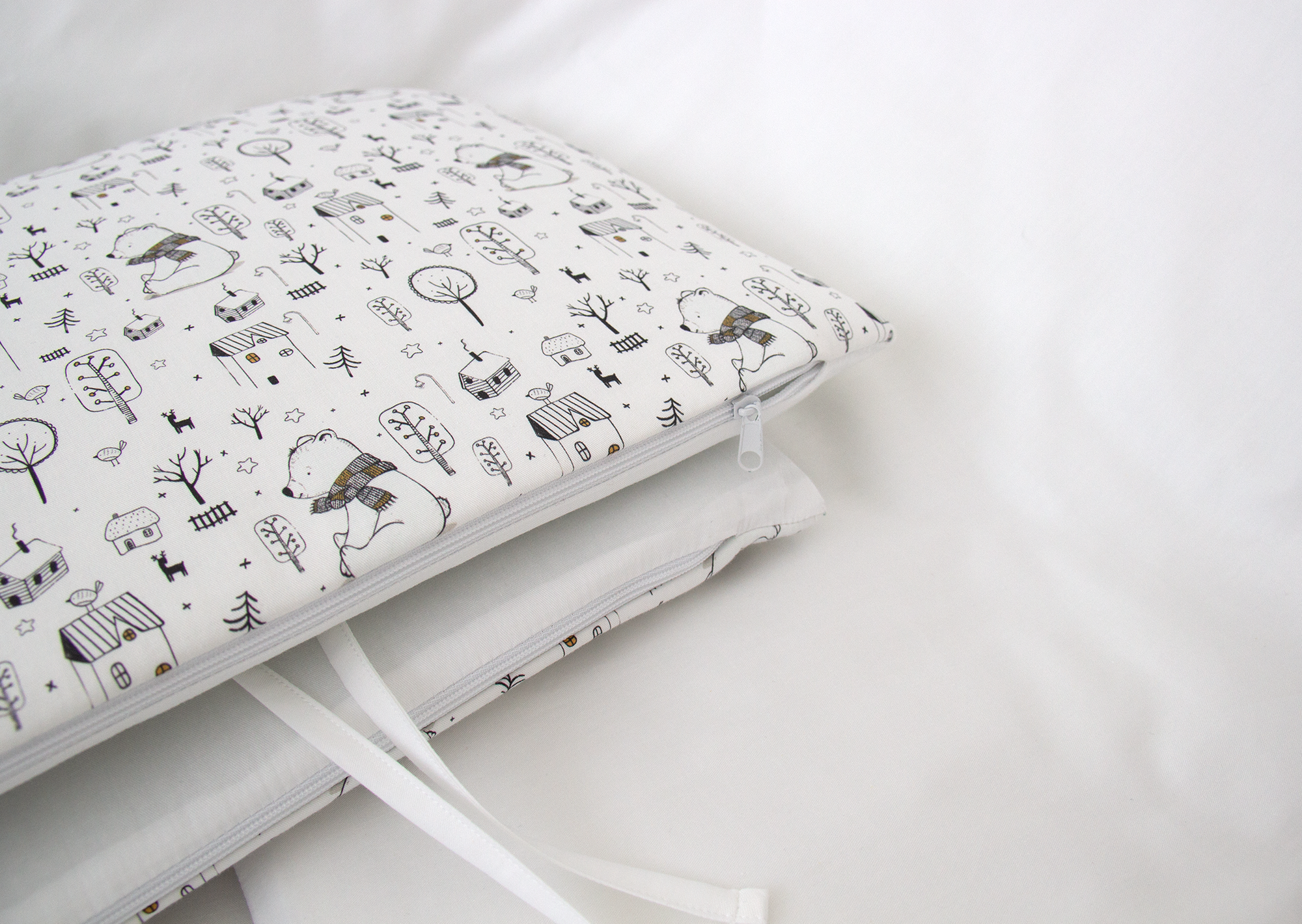 В бортики вшита скрытая молния, поэтому их удобно стирать, предварительно вынув наполнитель