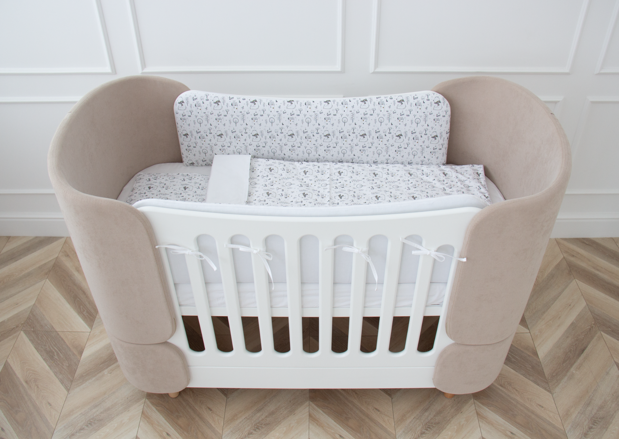 Комплект мягких защитных бортиков для кроватки KIDI soft включает 2 мягких бортика на боковые стенки кроватки