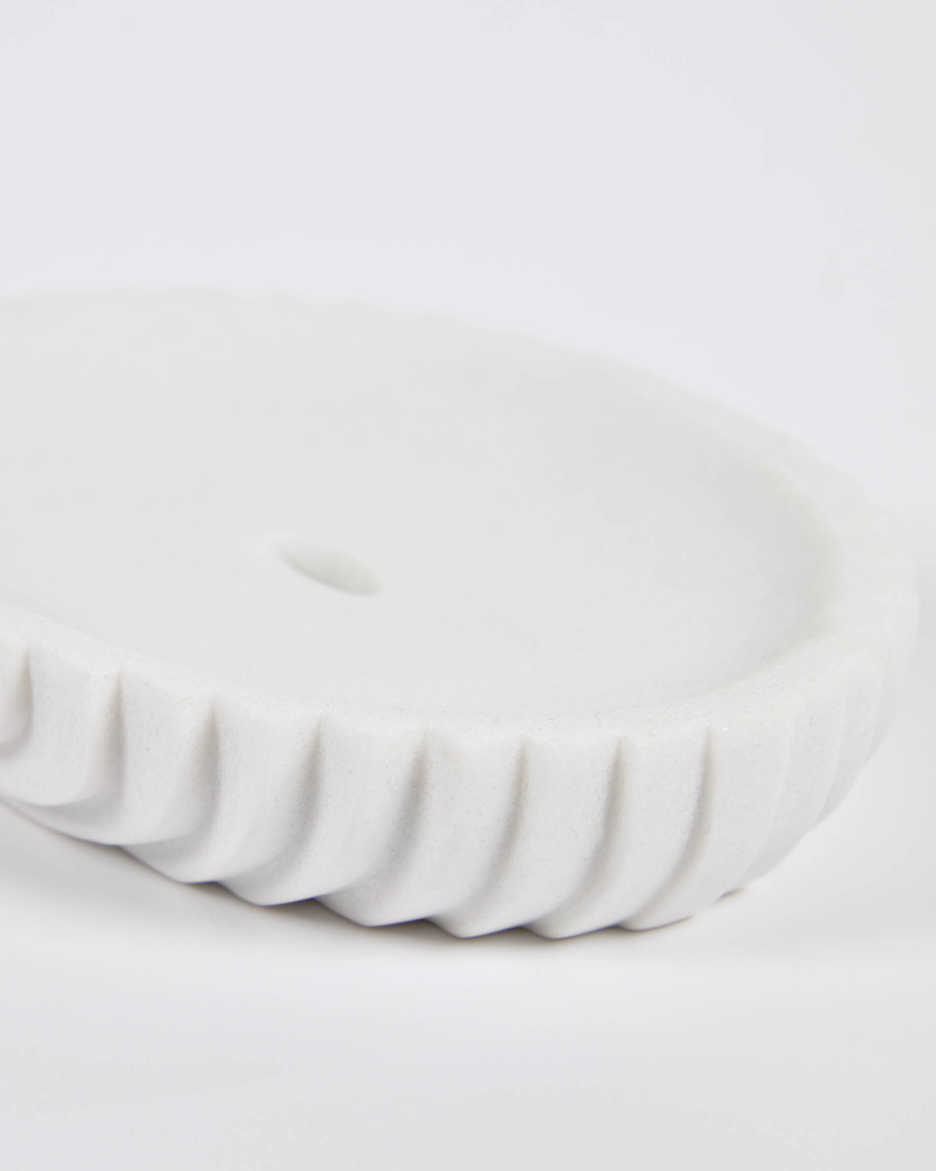 Набор аксессуаров для ванной Ateneas от фабрики La Forma (ex Julia Grup) – имитация гипса с рифленой фактурой.