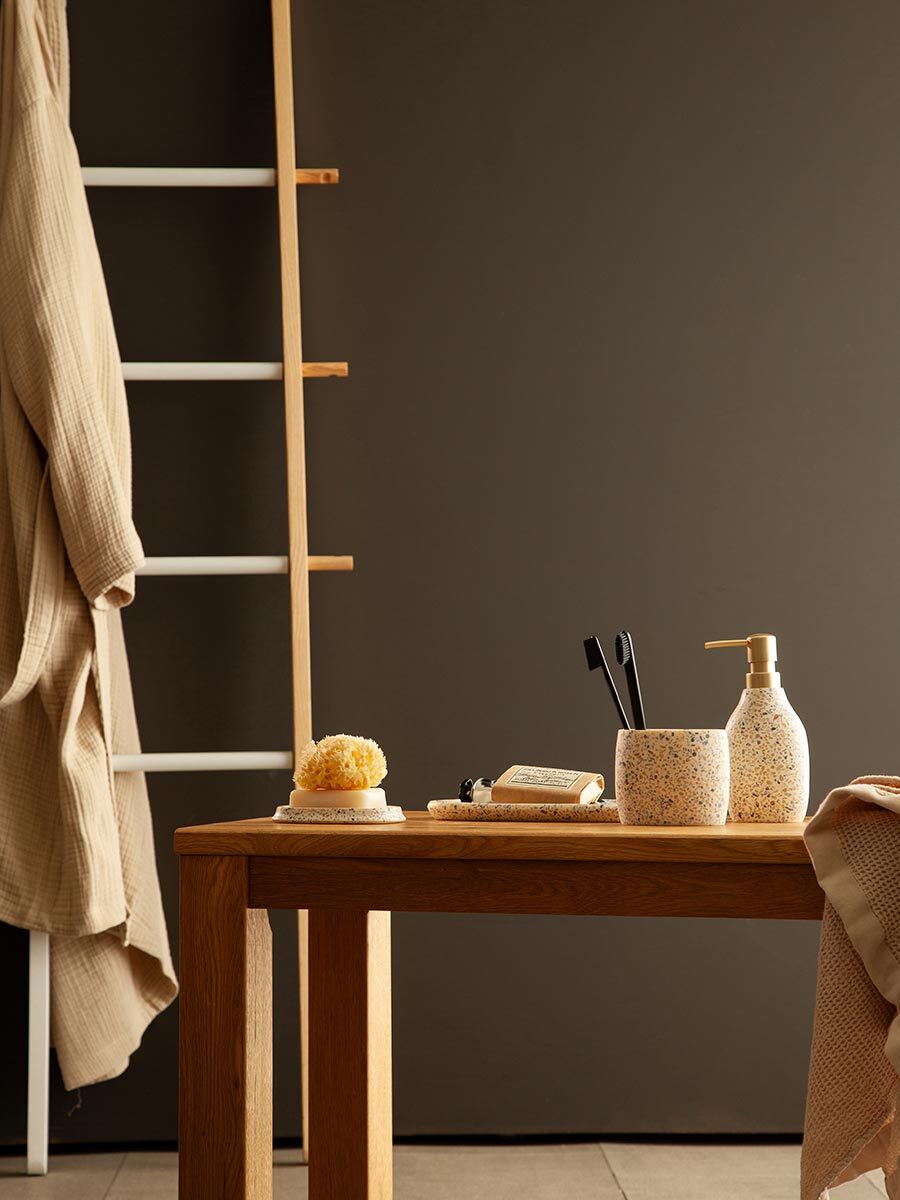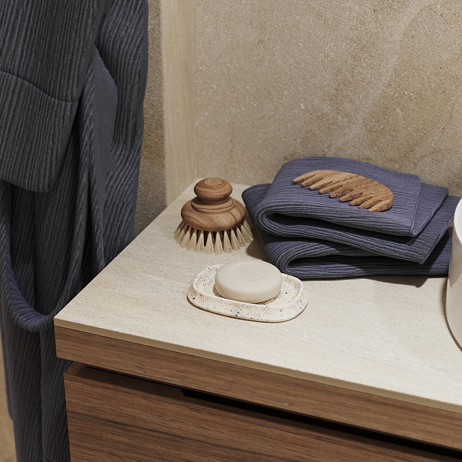 Мыльница Mosaic поможет организовать пространство у раковины и украсит интерьер ванной комнаты. Имитация фактуры натурального камня и нейтральная цветовая гамма делают аксессуар практичным, позволяя легко интегрировать его в различные стилевые решения.