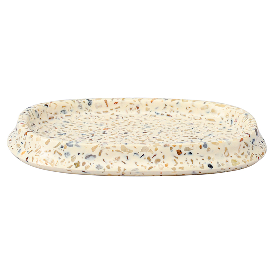 Материалы: терраццо, полирезин. Размеры: 13,5х9,5х1,7 см. Цвет: светло-бежевый.