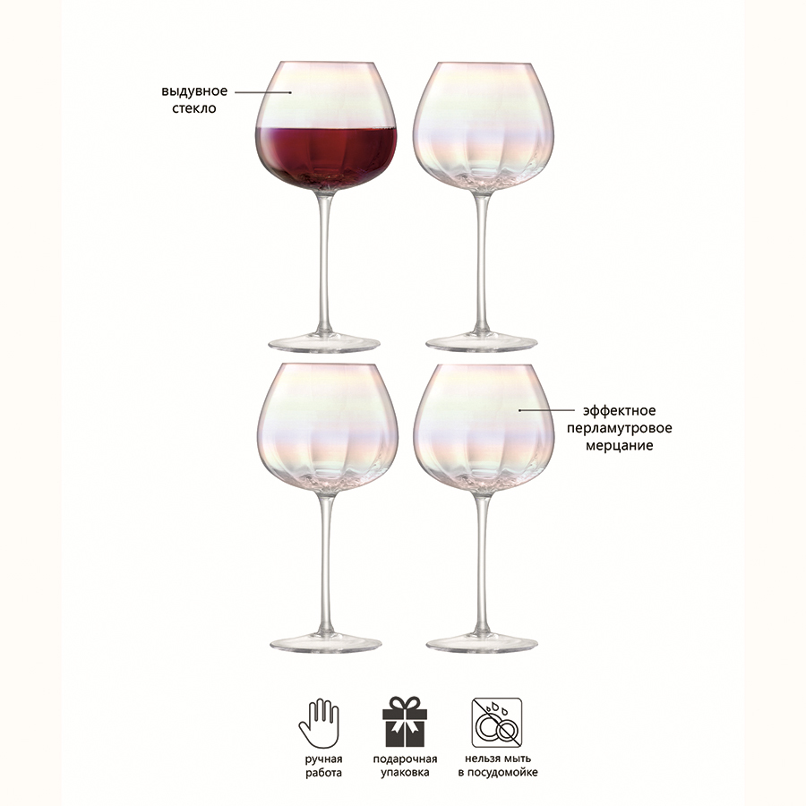 Бокалы для красного вина Pearl – стильная посуда для напитков, изготовленная из выдувного стекла с жемчужным отливом. Этот набор станет прекрасным дополнением к сервировке в любом стиле. Особенно эффектно такие бокалы будут смотреться с аксессуарами той же серии.