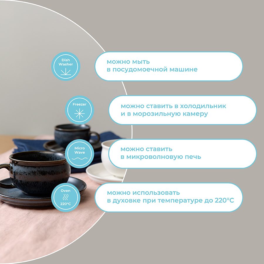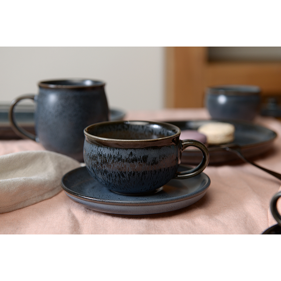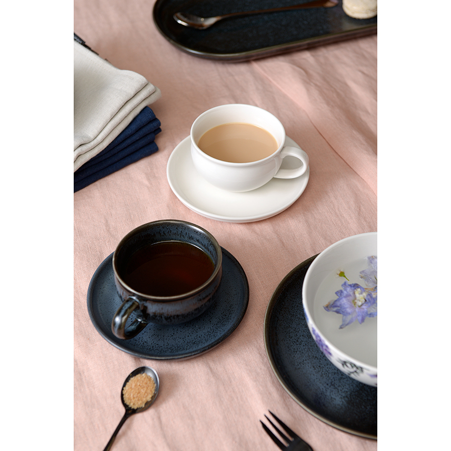 Чашки и блюдца серии Cosmic Kitchen от бренда Liberty Jones выполнены из высококачественного фарфора и покрыты реактивной глазурью, благодаря которой имеют неповторимую текстуру. Такая чайная пара станет настоящим украшением любой сервировки, будет органично сочетаться с посудой из стекла, бамбука и керамики. Материал изготовления неприхотлив в уходе, не впитывает загрязнения, является экологичным и безопасным для здоровья.