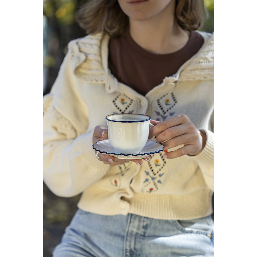 Чайные пары из коллекции Santorini от бренда Liberty Jones воплощают в себе элегантность посуды из фарфора, привлекая необычным дизайном с контрастными акцентами.