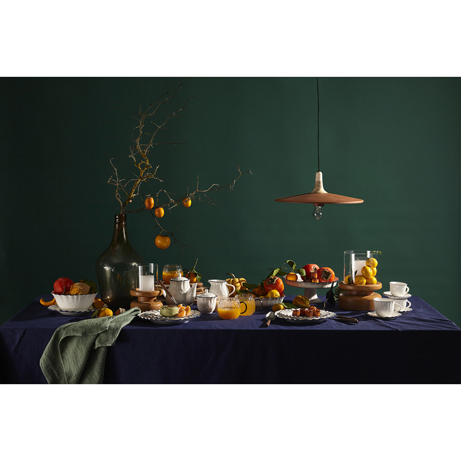 Коллекция Santorini великолепно передает атмосферу уединенного греческого острова, известного своими завораживающими видами и удивительной архитектурой. Оттенки белого и синего напоминают о бескрайнем море и уютных домиках на скалах, а необычная “мятая” фактура фарфора ассоциируется с каменистыми склонами и живописными утесами.