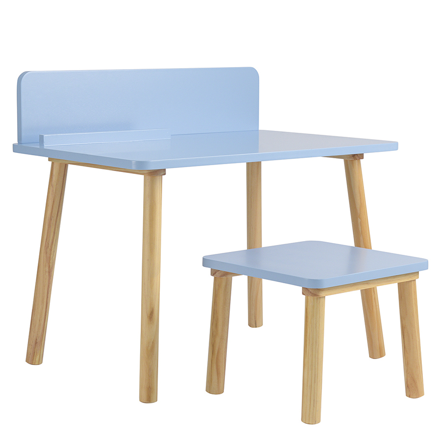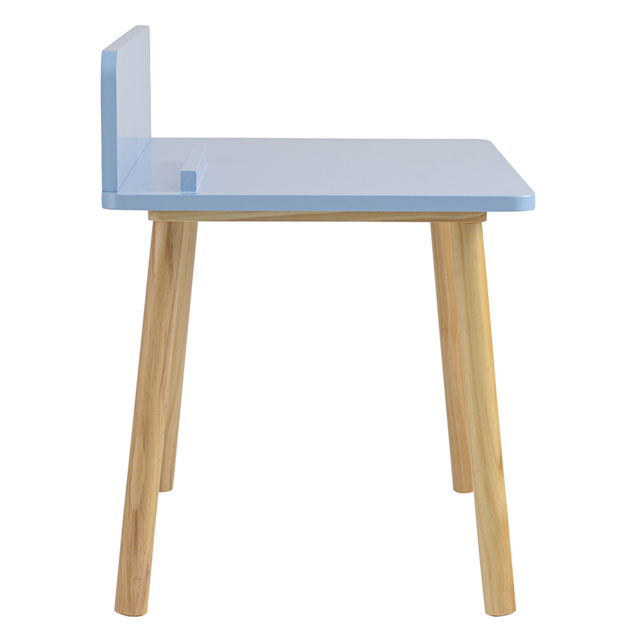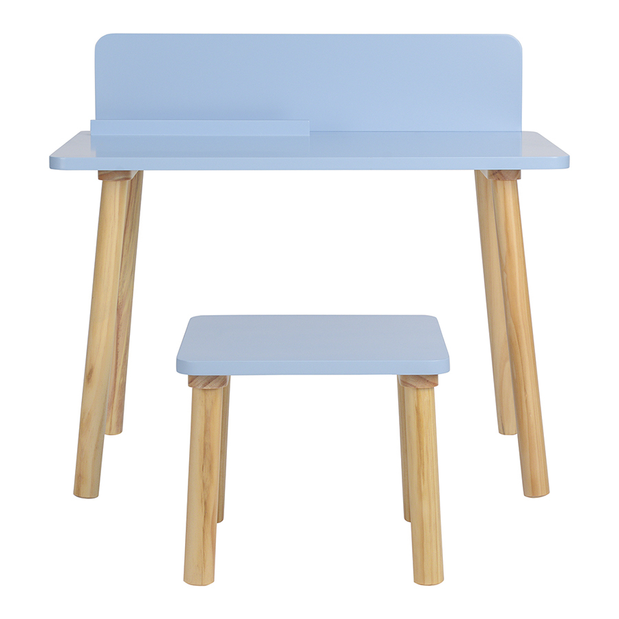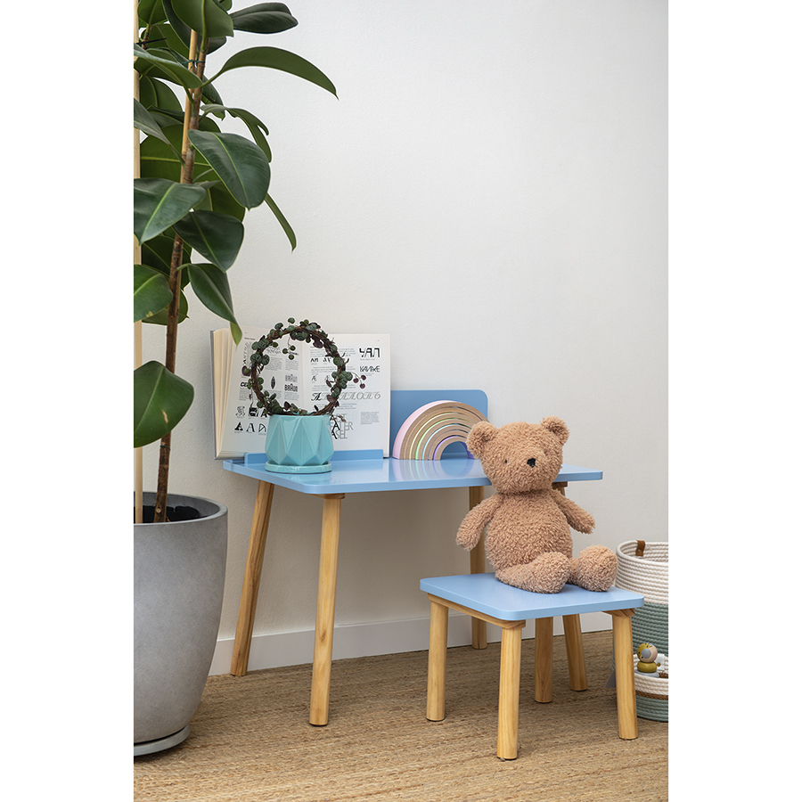 Материалы: древесина сосны, МДФ. Размеры: стол – 75х50х67 см, стул – 35х35х29 см. Высота столешницы: 50 см. Цвет: голубой.